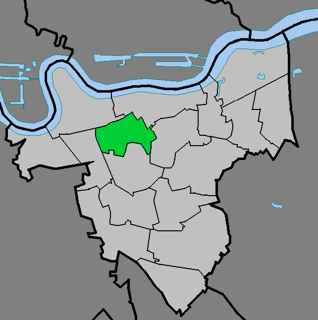 그리니치 왕립 자치구(옅은 회색) 내의 찰턴 구역(녹색)