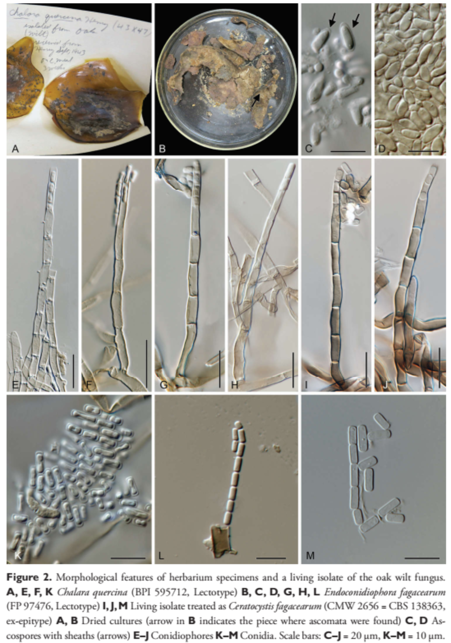 이명 | Chalara quercina Endoconidiophora fagacearum Thielaviopsis quercina Ceratocystis fagacearum |