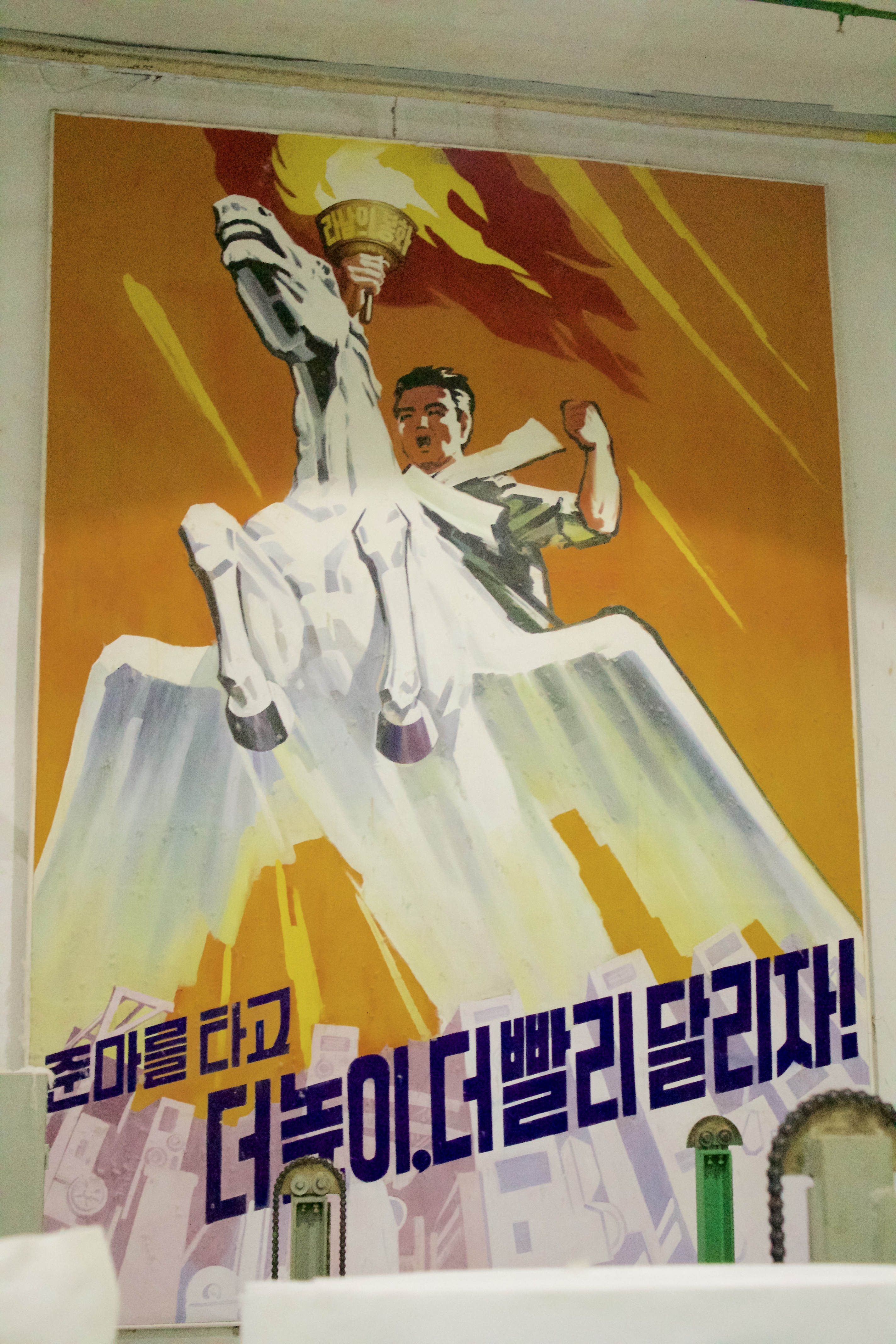 평양 만수대에 있는 높이 46미터의 천리마 동상은 1961년에 완공되었으며, "하루에 천 리를 달린다는 전설적인 천리마처럼 조선 인민의 영웅적 기상과 불굴의 투쟁 정신을 기리기 위해" 건설되었다. 동상에는 노동당 중앙위원회의 "붉은 글"을 높이 들고 있는 노동자와 벼 이삭을 들고 있는 젊은 여성 농부가 타고 있다.[16]