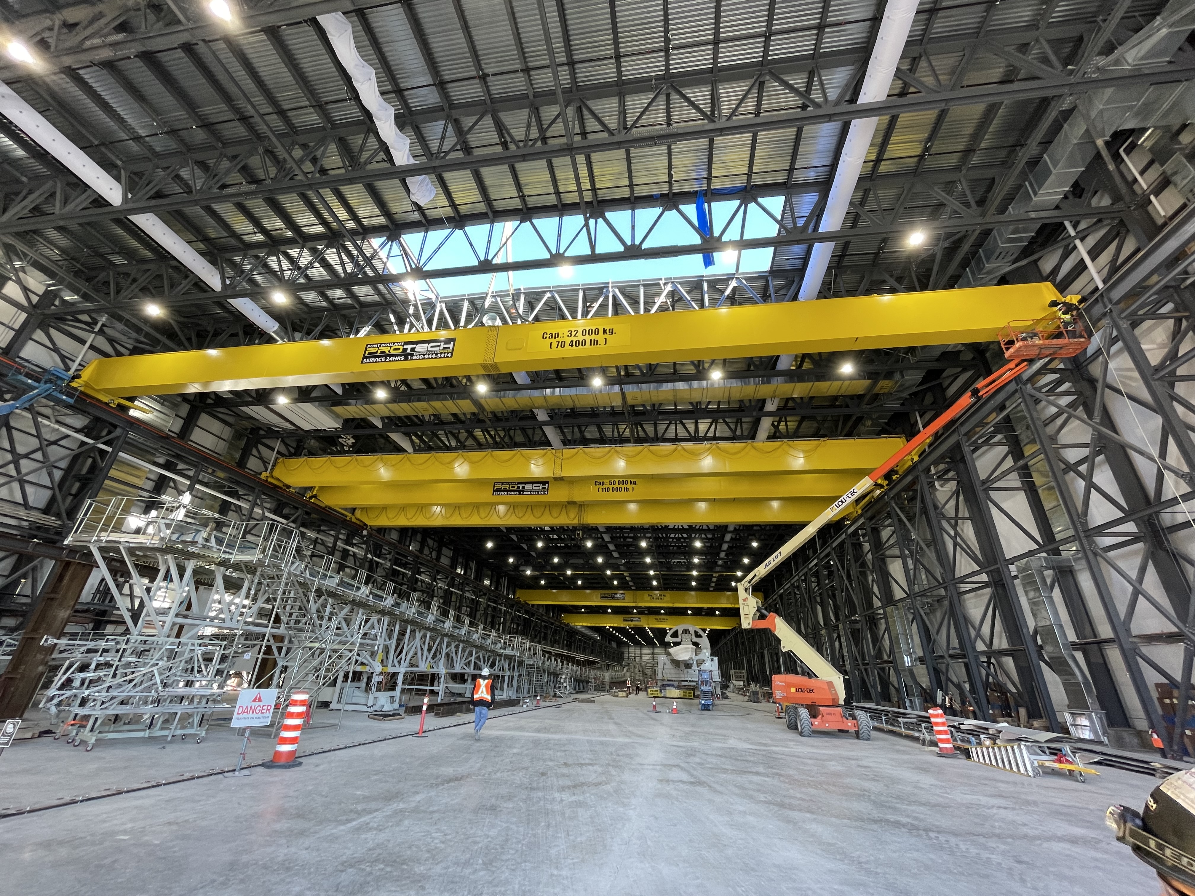 조선 산업에서는 선박 블록 조립, 엔진 설치 등 중량물 운반에 천장 크레인이 필수적이다.4. 4. 기타 산업