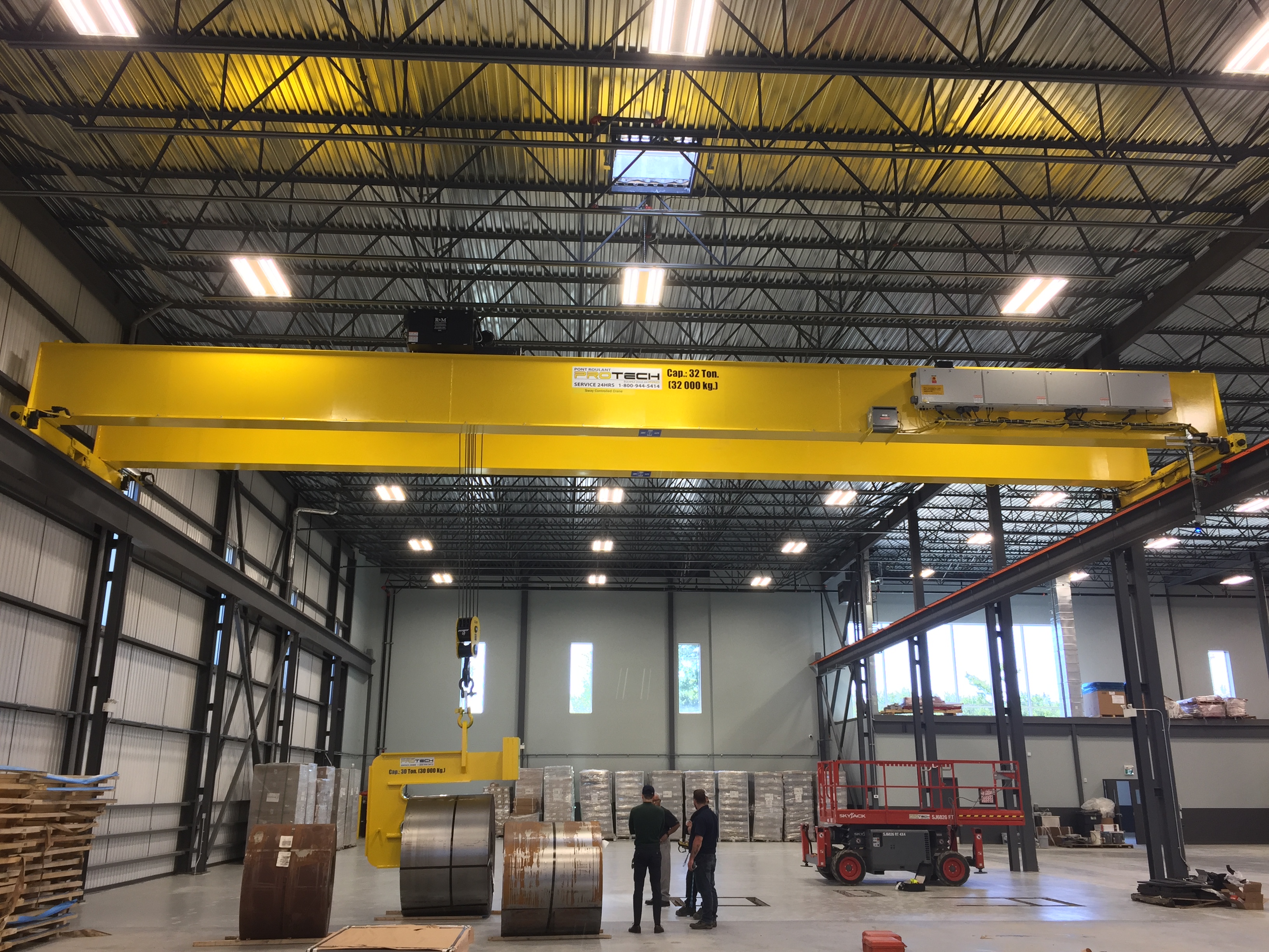 오버헤드 크레인은 철강 및 구리, 알루미늄과 같은 기타 금속의 정련에 일반적으로 사용된다. 완제품으로 공장을 떠날 때까지 모든 제조 공정 단계에서 금속은 오버헤드 크레인에 의해 처리된다. 원자재는 크레인으로 용광로에 쏟아지고, 뜨거운 금속은 특정 두께로 압연되어 템퍼링 또는 어닐링된 다음 냉각을 위해 오버헤드 크레인으로 보관되며, 완성된 코일은 오버헤드 크레인으로 들어 올려 트럭과 기차에 적재되고, 제작자 또는 스탬퍼는 공장에서 오버헤드 크레인을 사용하여 강철을 처리한다. 자동차 산업은 원자재를 처리하기 위해 오버헤드 크레인을 사용한다. 지브 크레인 또는 갠트리 크레인과 같은 더 작은 작업장 크레인은 CNC 밀 또는 톱과 같은 작업 영역에서 더 가벼운 하중을 처리한다.