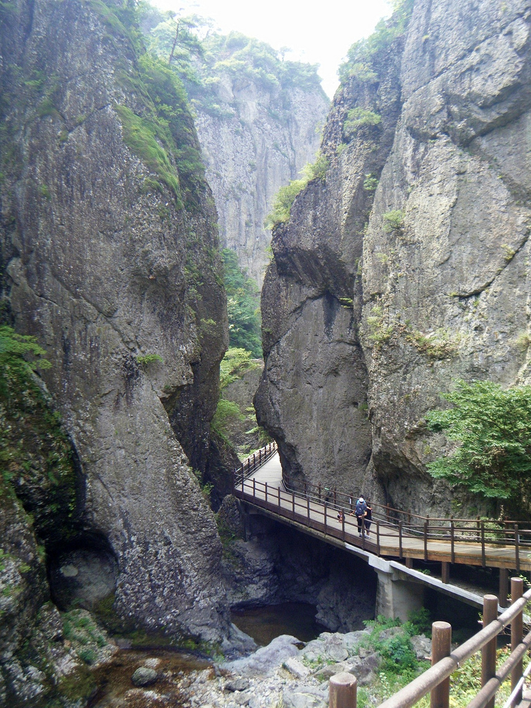 주왕산의 유천층군 안산암류에 발달한 주왕계곡의 모습
