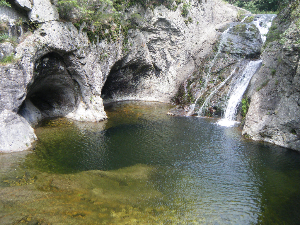 주왕산의 유천층군 안산암류에 발달한 폭포의 모습