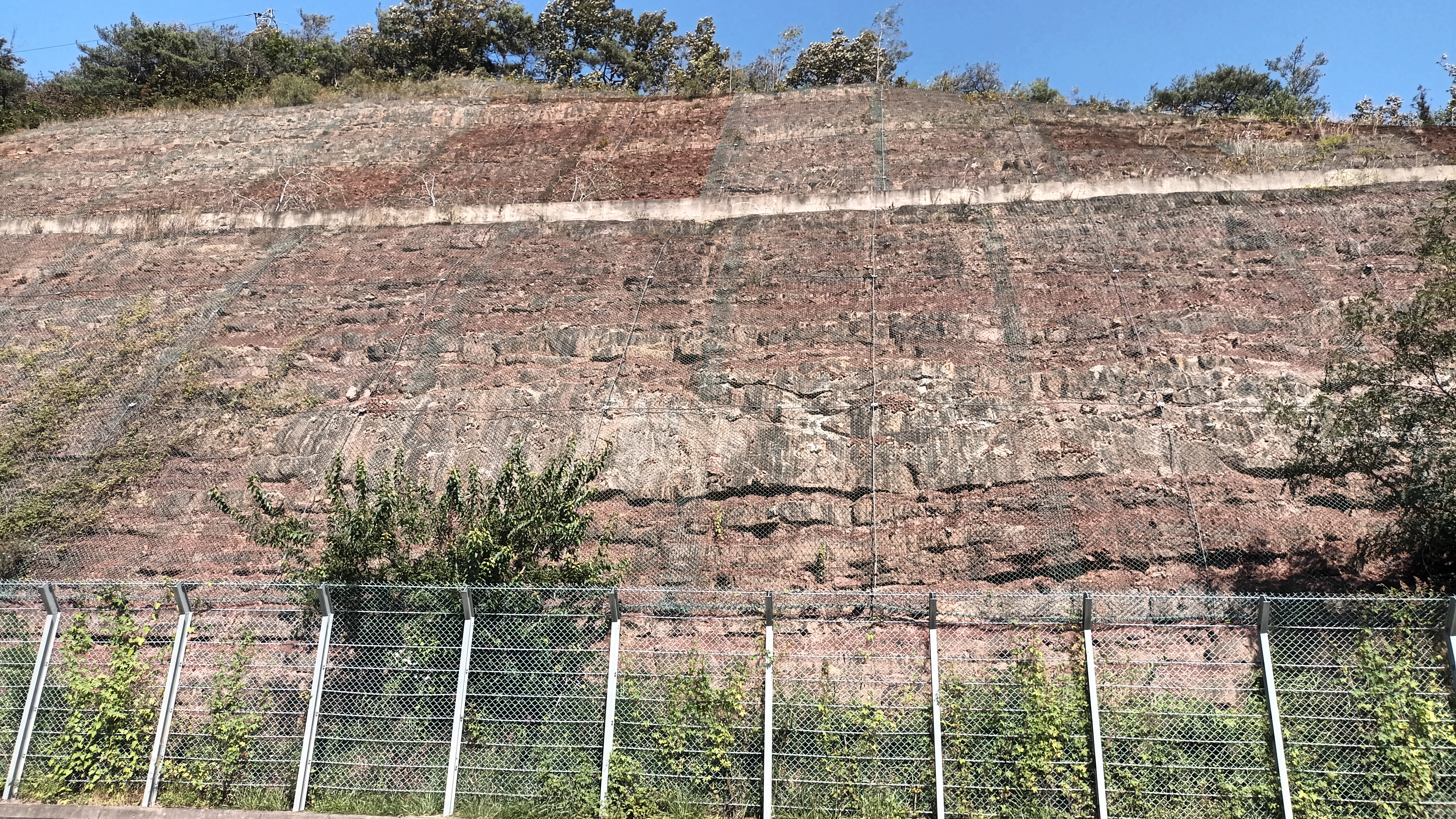 삼자현로 도로변 노두. 북동쪽으로 경사한다.