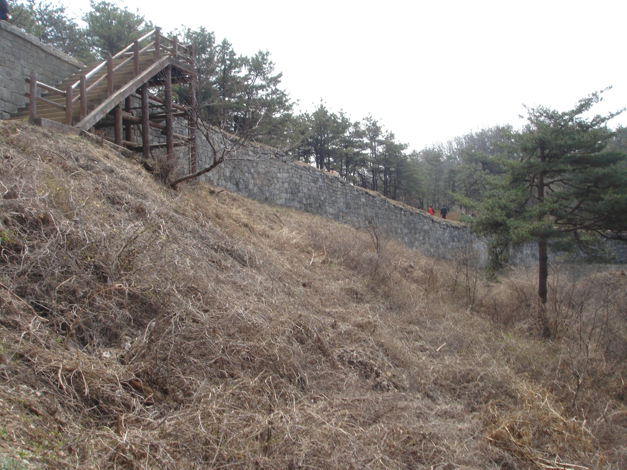 등산로에서 바라본 상당산성 성벽