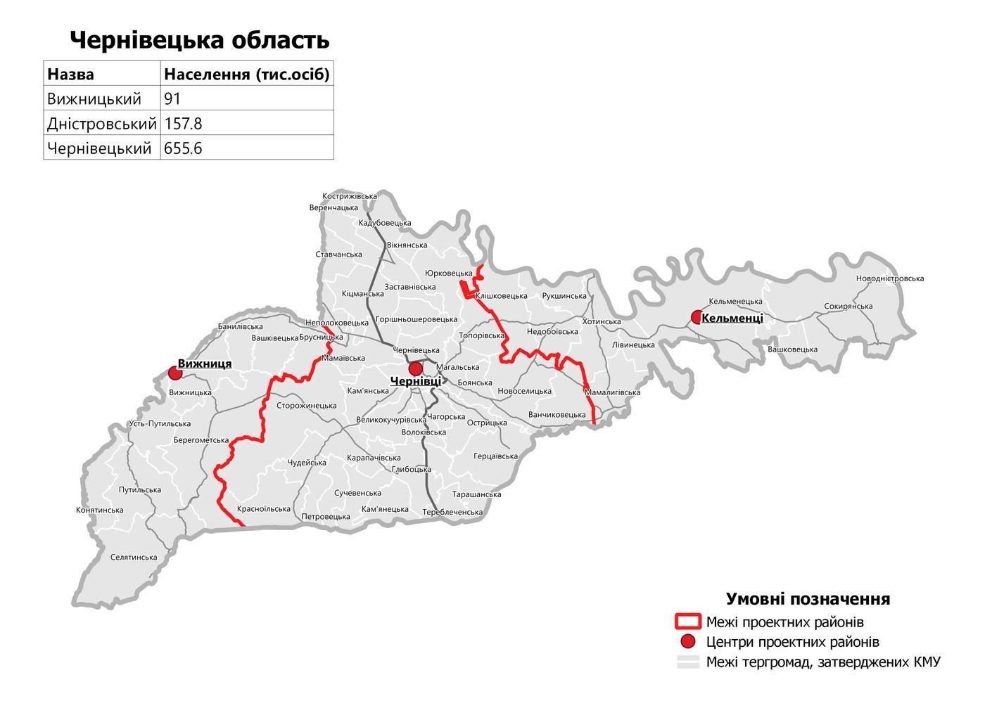 2020년 7월부터 체르니우치주는 행정적으로 3개의 ''라욘''(구)으로 나뉜다.