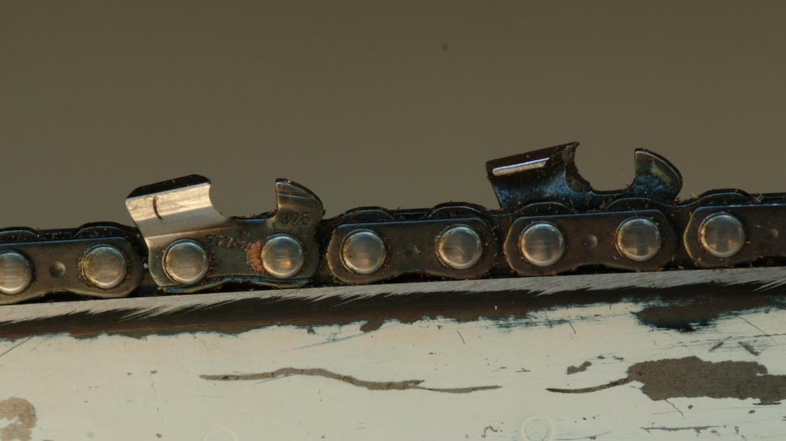- 날카롭게 유지: 체인이 제대로 작동하려면 날카롭게 유지해야 한다. 흙, 금속 또는 돌에 닿으면 빠르게 무뎌진다. 무뎌진 체인은 날카로운 체인이 만드는 길고 깨끗한 톱밥 대신 가루 형태의 톱밥을 생성하며, 절단 시 작업자가 더 많은 힘을 주어야 한다. 또한 무딘 체인은 체인톱의 진동을 유발하는 명확한 징후이다. 날카로운 체인은 작업자가 힘을 주지 않아도 나무 속으로 스스로 파고든다. 뿌리 절단과 같이 흙에 오염될 가능성이 있는 작업에는 탄화 텅스텐으로 제작된 특수 경화 체인을 사용하기도 한다.