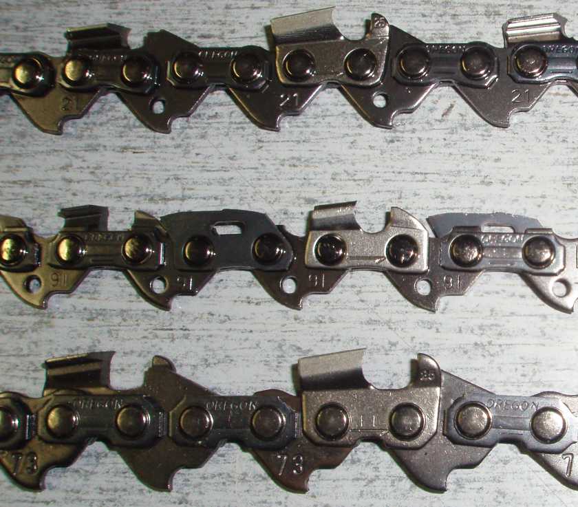 일반적인 "풀 컴플리먼트" 체인은 드라이브 링크 2개당 커터 1개가 있고, "풀 스킵" 체인은 드라이브 링크 3개당 커터 1개가 있다. 각 커터 앞에는 절삭 깊이를 제한하는 깊이 게이지(depth gauge 또는 레이커)가 있으며, 일반적으로 커터보다 약 0.5mm 낮게 설정되어 절삭 깊이를 조절한다. 깊이 게이지는 안전과 성능에 중요하며, 너무 높으면 절삭 속도가 느리고 너무 낮으면 킥백 위험이 커지고 진동이 심해진다.