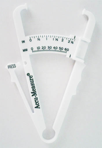 피하지방 두께 측정기(캘리퍼)를 사용하여 피하지방의 두께를 측정하고, 그 측정값을 계산식에 대입하여 체지방률을 측정하는 방법이다.[38] 이 방법은 간편하지만, 피하지방 분포에는 개인차가 있어 오차가 발생할 수 있으며, 측정에 어느 정도 기술이 필요하고, 내장 지방을 측정할 수 없다는 단점이 있다.