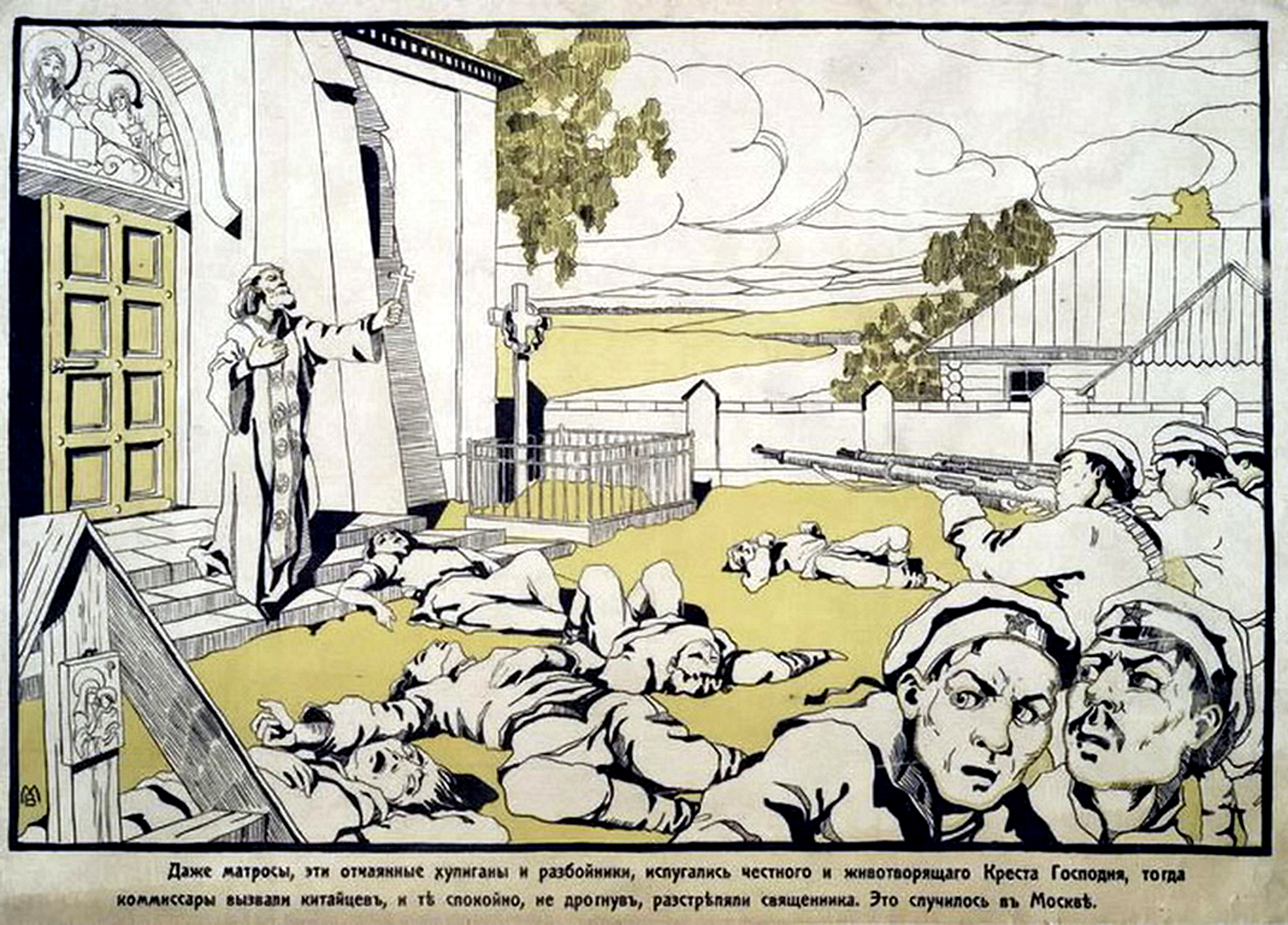 이러한 볼셰비키와 체카의 활동은 "적색 테러"라고 불렸다.[21] 1918년 9월 5일 펠릭스 제르진스키가 시행한 "적색 테러"는 붉은 군대의 기관지인 ''크라스나야 가제타''(Krasnaya Gazeta)에 생생하게 묘사되었다.[22] 체카는 혁명 수호를 명분으로 혐의만으로도 재판 없이 수천 명을 처형했고, 살아남은 사람들은 시베리아 등으로 유형을 보내는 것이 일반적이었다.[21]