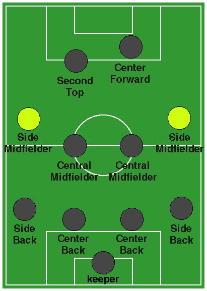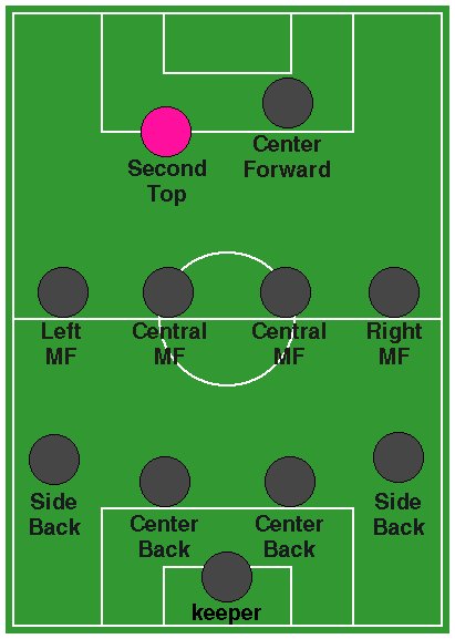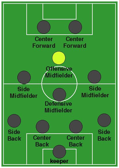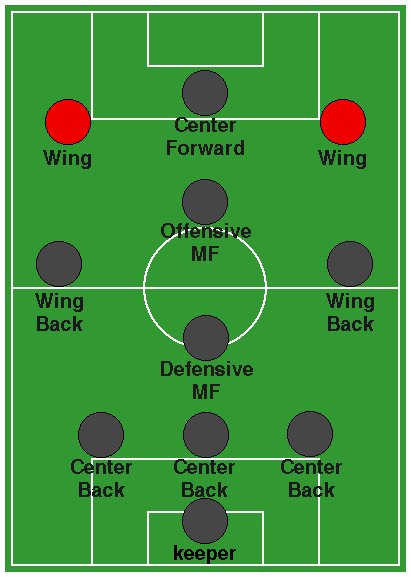 기타 포지션 | 스위퍼 윙백 수비형 미드필더 공격형 미드필더 윙어 세컨드 스트라이커 센터 포워드 |