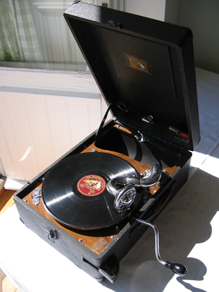 영국 영어에서 "그라모폰"은 디스크 레코드를 사용하는 모든 소리 재생 기계를 지칭할 수 있다. 그라모폰 회사에 의해 영국에서 소개되고 대중화되었으며, 처음에는 회사의 고유 상표였으나, 1910년 영국 법원 판결로 일반 명사가 되었다.[9]