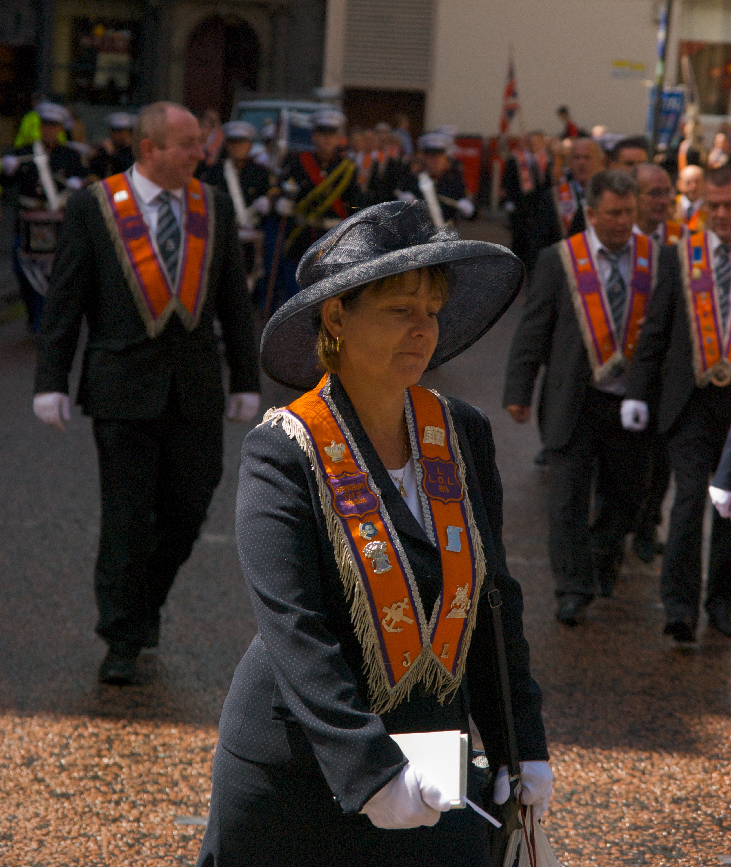 1845년 금지령이 해제되었지만, 1849년 오렌지단원과 리본맨 간의 돌리스 브레이 전투로 인해 수십 년 동안 오렌지 행진이 금지되었다.[45] 이는 로열 블랙 협회의 수석 오렌지 형제단인 발리킬베그의 윌리엄 존스턴의 불복종 운동 이후 해제되었다.[45] 1867년 오렌지단 12일, 존스턴은 다운주의 뱅고어에서 뉴타운아즈까지 오렌지단원들의 대규모 행렬을 이끌었고, 단체 행렬법 위반으로 2개월 징역형을 선고받았다.[47][48]