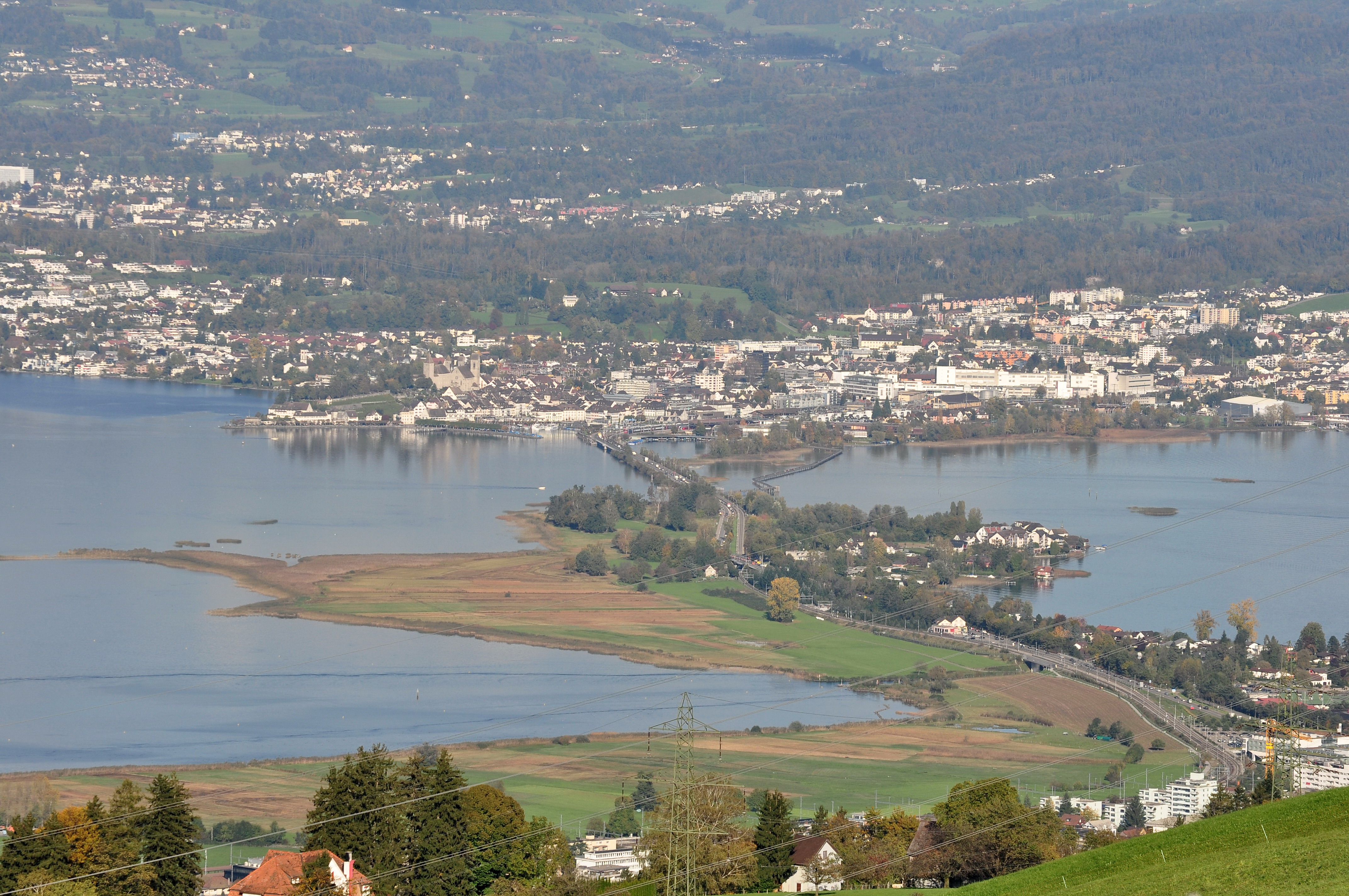 라퍼스빌-요나–테크니쿰 | 여러 개의 울타리와 이전 섬에 위치한 명확하게 보이는 정착 구조는 기원전 17세기에 해당하는 초기 청동기 시대 유적의 특징이다. 이는 라퍼스빌과 후르덴-로스호른(CH-SZ-01) 사이의 지댐을 가로지르는 초기 보행교와 같은 시기를 나타낸다. 이 정착지는 이 지역의 중심으로서 분명히 매우 중요했으며, 이 중요한 운송 경로를 통제하는 데 역할을 했을 수도 있다.[12] | 라퍼스빌 | 장크트갈렌 | 47.219550, 8.815708 | 0.92ha | 49.1ha | 1363-032 CH-SZ-02 | 2000–1500 | |