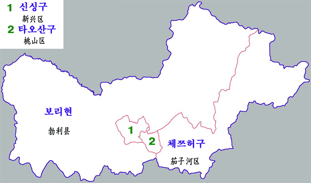 1984년 12월 15일타오산구, 싱싱구, 지에쯔허구 발족.(3구 1현)