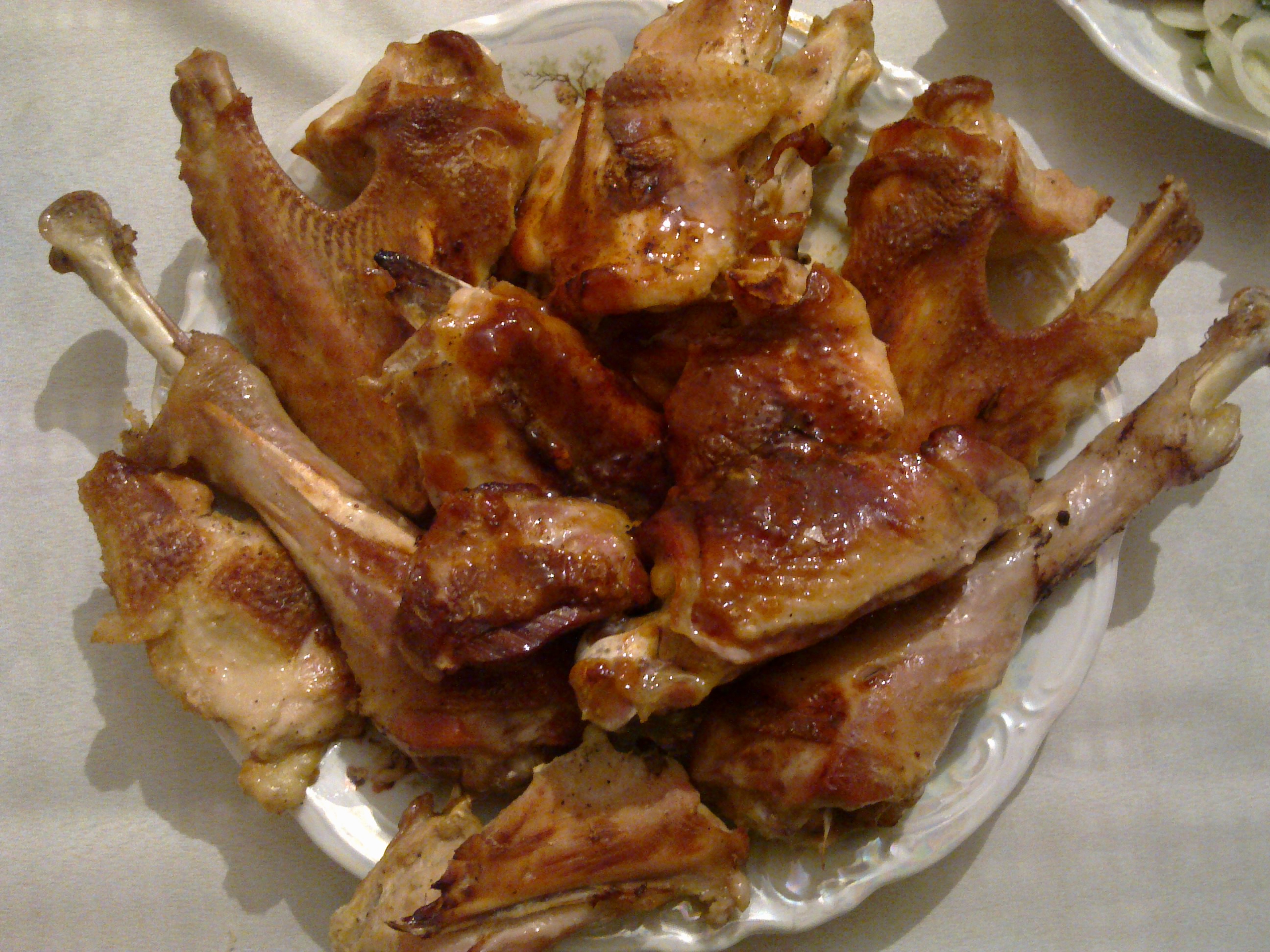 미국과 캐나다에서는 추수감사절 저녁 만찬에 칠면조고기를 먹는 것이 전통이다.[30] 20세기 이전에는 돼지갈비가 북미 명절에 가장 흔한 음식이었다. 칠면조는 한때 야생에 많이 서식하여 일년 내내 먹었으며 흔한 음식으로 여겨졌지만, 돼지갈비는 추수감사절에서 새해까지만 구할 수 있었다.[33]