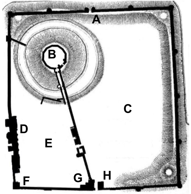 - 동물 벽: 성의 남쪽에 다양한 동물 조각상으로 장식되어 지어졌으나, 1920년대에 성의 서쪽으로 이전되었다.[114][115]