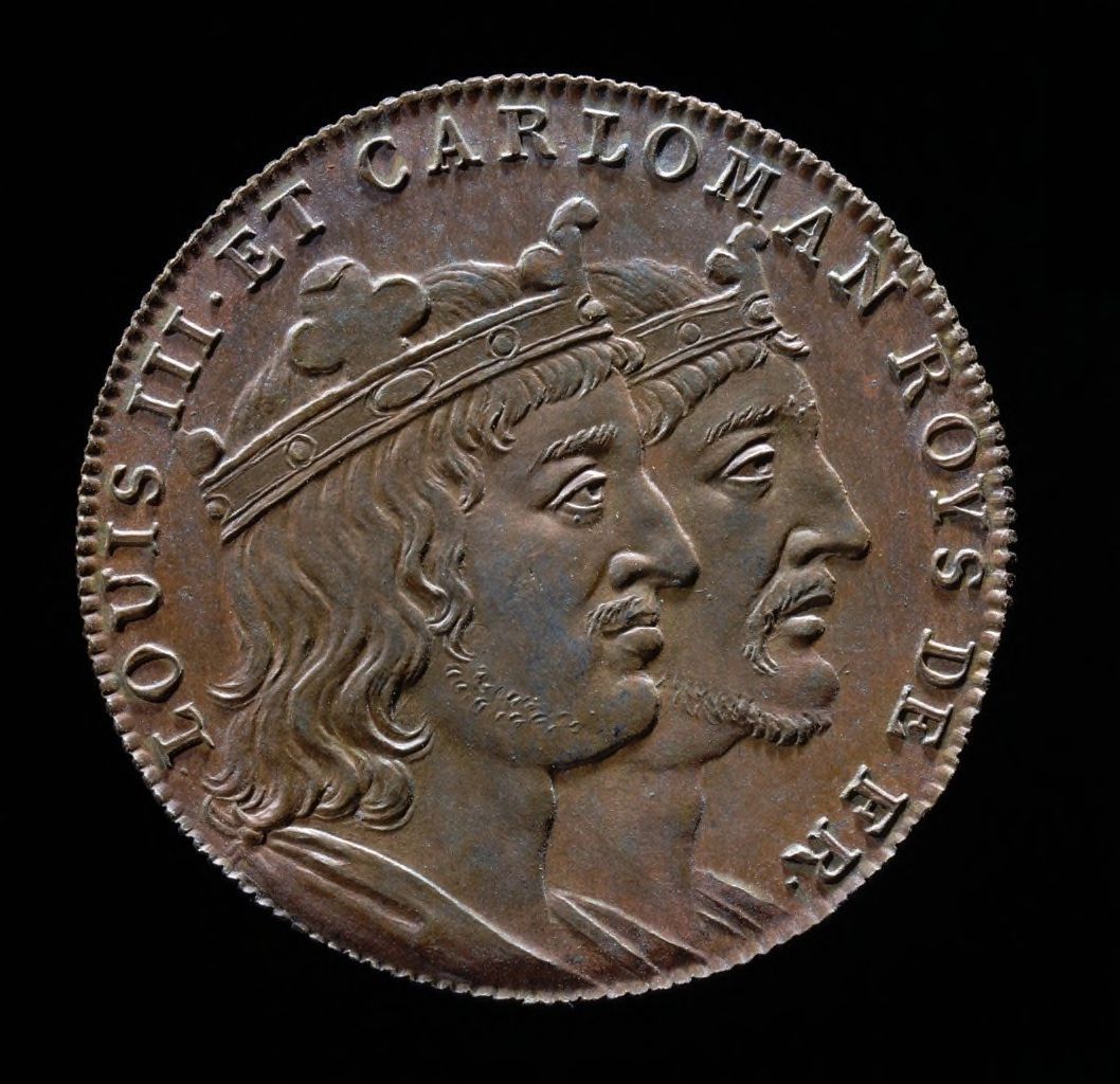 루도비쿠스 3세와 카를로마누스 2세가 있는 동전