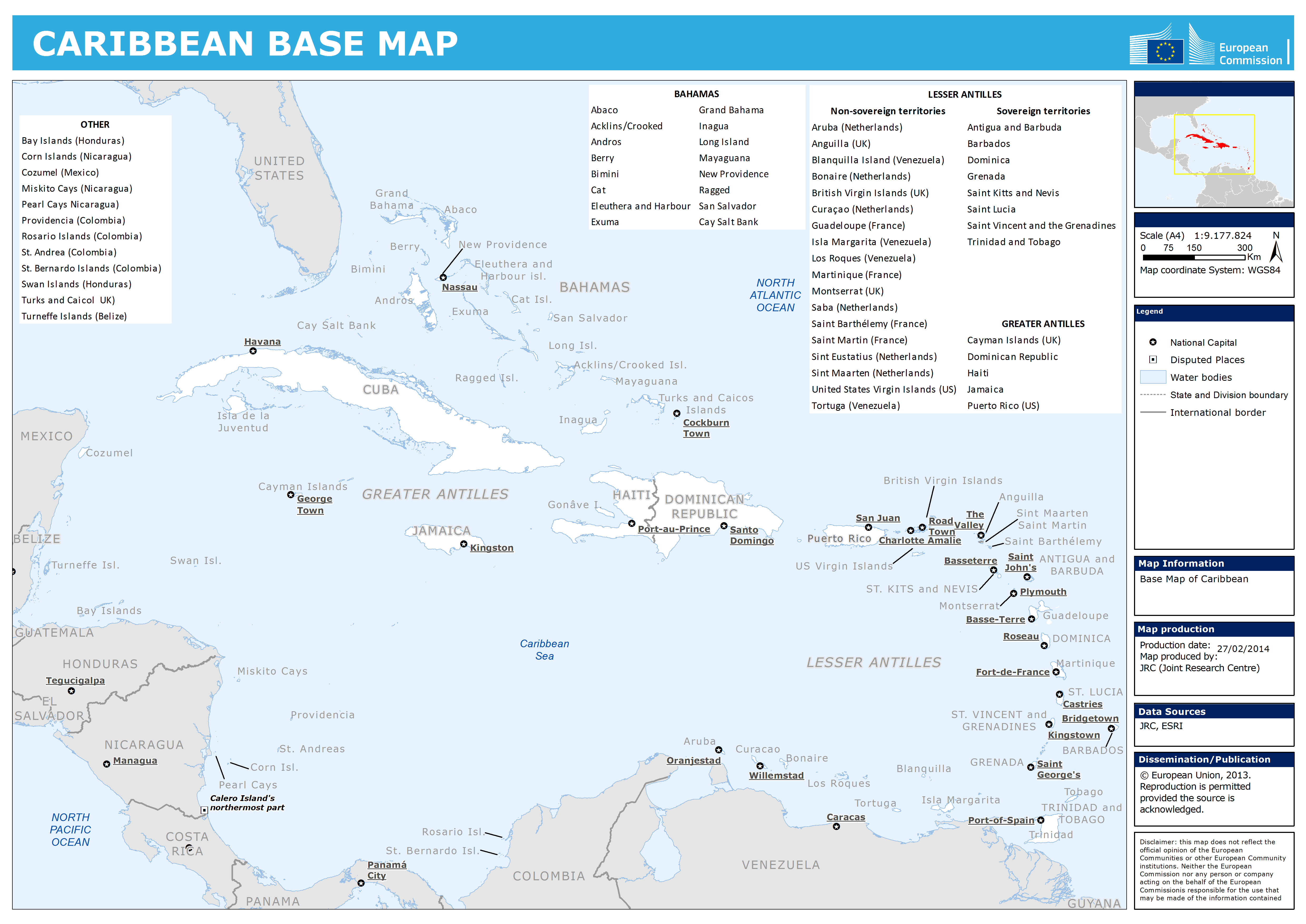 주요 도시 | 산토도밍고 포르토프랭스 산후안 하바나 킹스턴 산티아고데로스카바예로스 산티아고데쿠바 빌렘스타트 오라녜스타드 푼타카나 카파이시앵 나소 파라마리보 체투말 스패니시타운 포를라마르 카옌 조지타운 브리지타운 산페르난도 벨리즈시티 |