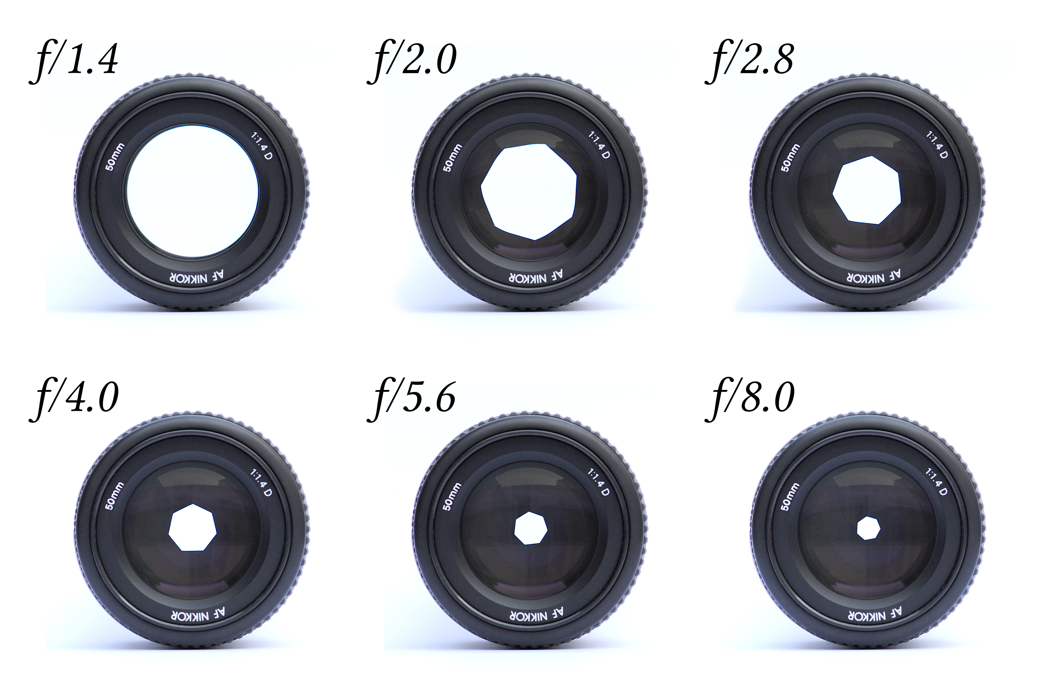 렌즈의 최대 사용 가능 조리개는 렌즈의 초점 거리를 유효 조리개(또는 입사 동공)로 나눈 값인 f-number 또는 초점비로 지정되며, 이는 무차원 숫자이다. f-수가 낮을수록 초점면의 광도가 높아진다. 더 큰 조리개(더 작은 f-수)는 다른 조건이 동일할 때 더 작은 조리개보다 훨씬 얕은 피사계 심도를 제공한다.