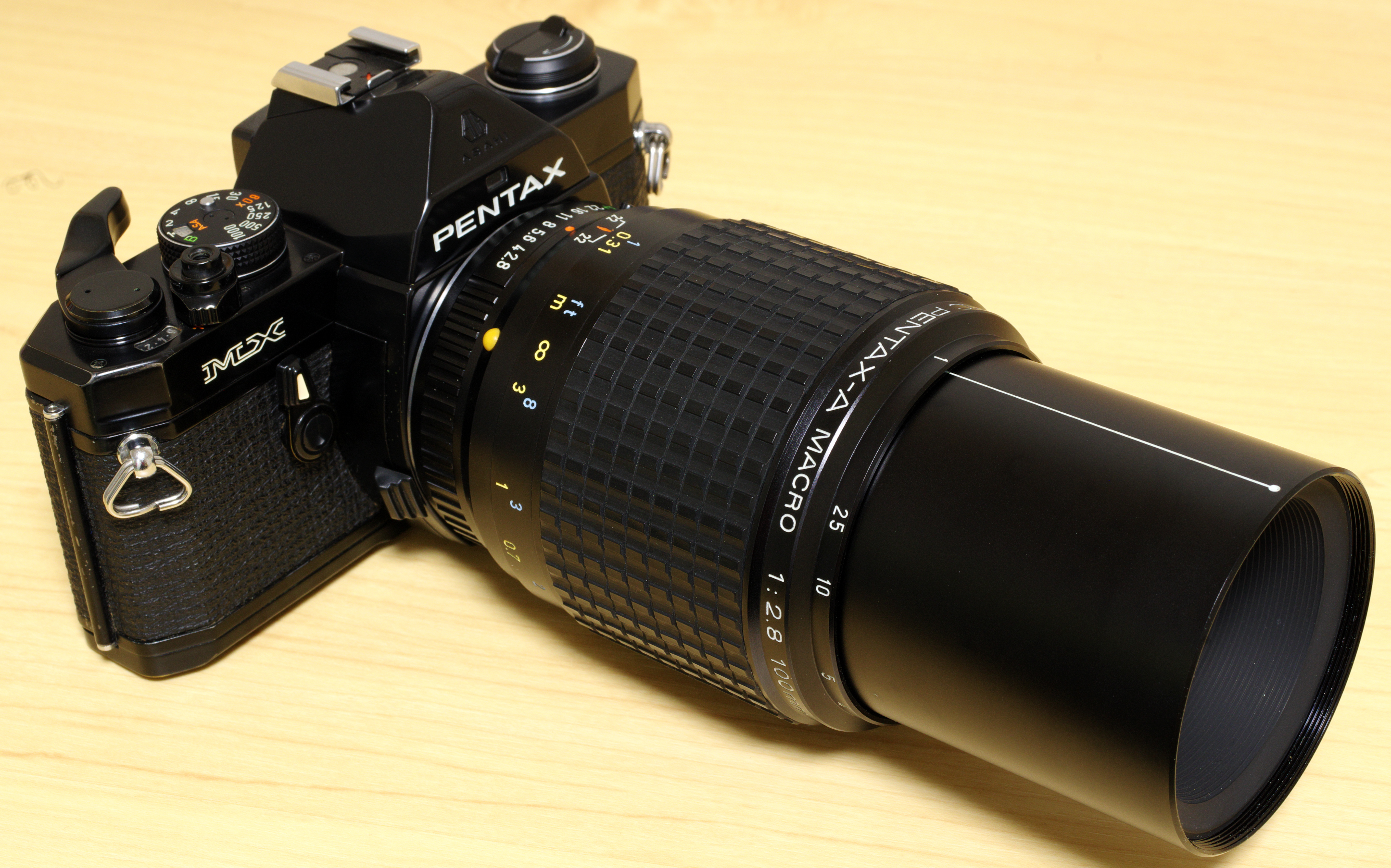 - '''매크로 렌즈''': 일반 렌즈보다 높은 촬영 배율로 접사 촬영을 할 수 있도록 설계된 렌즈이다. 통상적인 매크로 렌즈는 최대 촬영 배율이 1/2배[26] 또는 등배[27]인 경우가 많다. "망원 매크로" 렌즈는 동물 등에 접근하지 않고 크게 촬영할 수 있도록 피사체와의 거리를 길게 할 수 있다. 문헌 복사, 생물/공예품 세부 부품 촬영 등에 사용되지만, 접사뿐만 아니라 무한대부터 초점이 맞아 통상적인 촬영에도 대응 가능하다. 피사계 심도가 얕아 인물 사진 등에도 사용된다. 매크로 사진 전용 특수 렌즈는 1~20배 정도의 촬영에 특화되어 있으며, 현미경 대물 렌즈와 비슷한 형태이다. 니콘(Nikon)은 설계 배율이 등배 이하인 제품을 "마이크로 렌즈", 등배를 초과하는 제품을 "매크로 렌즈"로 구분한다.[28]