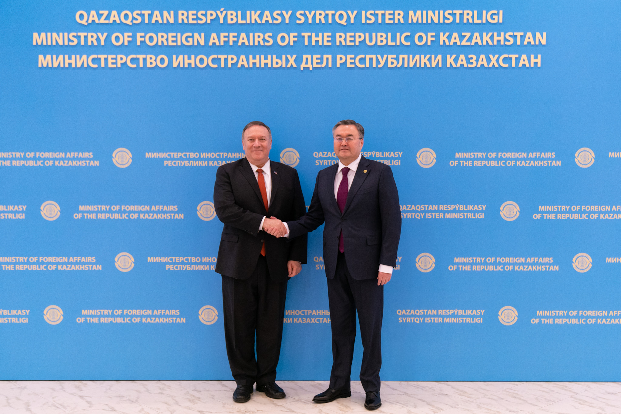 카자흐스탄 외교의 역사는 카자흐 칸국 시대 칸들이 외교 관계를 발전시키고 외교 정책을 시행했던 시기로 거슬러 올라간다. 당시 카자흐 칸국의 주된 외교 목적은 영토 확장을 위한 협상과 국제 교류를 위한 무역로, 도로, 무역 거점를 만드는 것이었다. 카자흐 칸국의 수도에는 외교 및 사회 경제 관련 문서를 발행하는 관청이 있었고,[8] 칸은 인근 귀족들과 총독들에게 메시지와 명령을 전달하는 사절(''일치'')을 임명했다.[9][10]