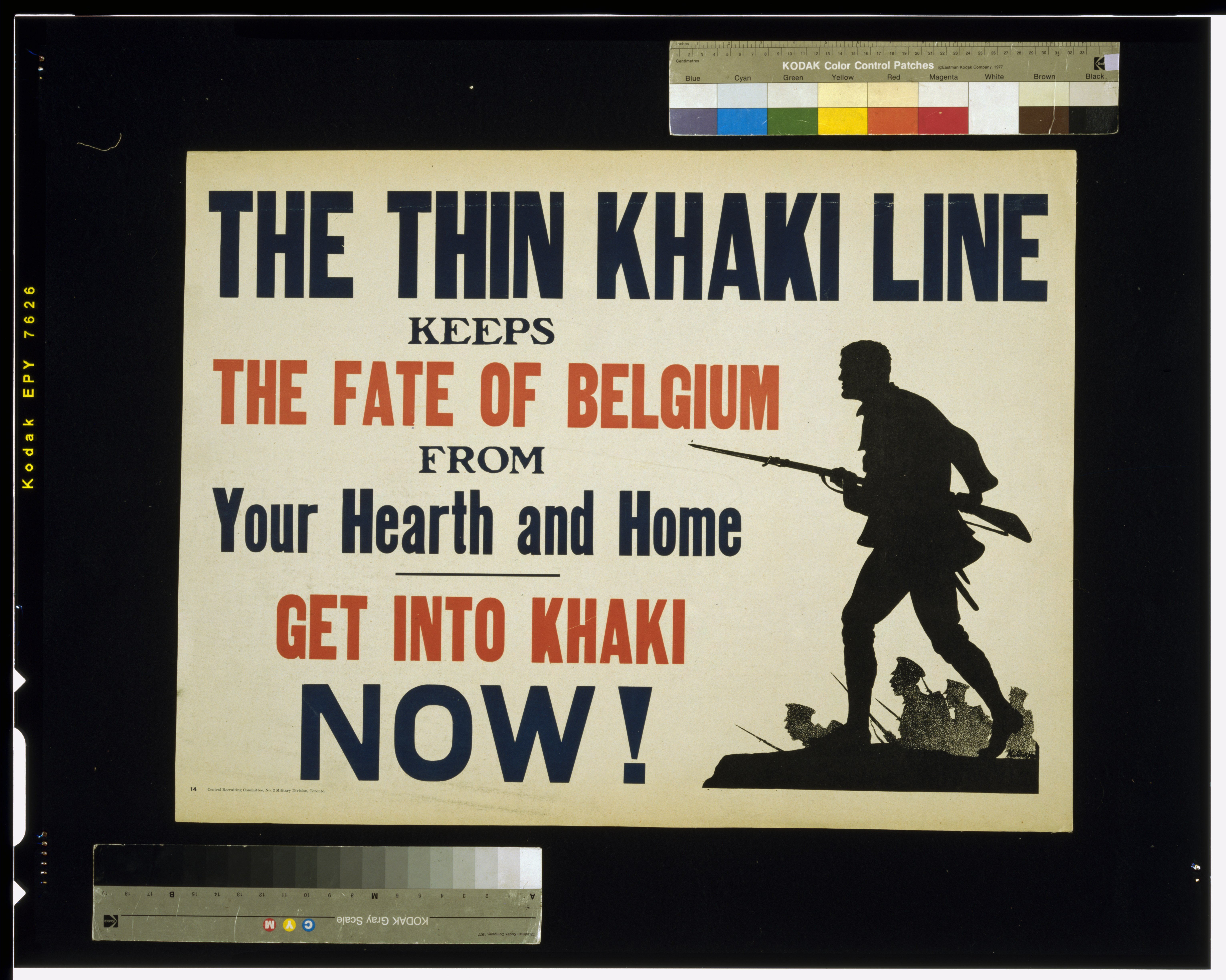 붉은색 코트와 같은 전통적인 밝은 색상은 19세기 초부터 소규모 전투에서 실용성이 떨어진다는 점이 인식되었다.[8][9] 항공 감시와 무연 화약과 같은 향상된 기술에 대응하여, 카키색은 전투 현장에서 병사들을 위장할 수 있었다.[10][6]