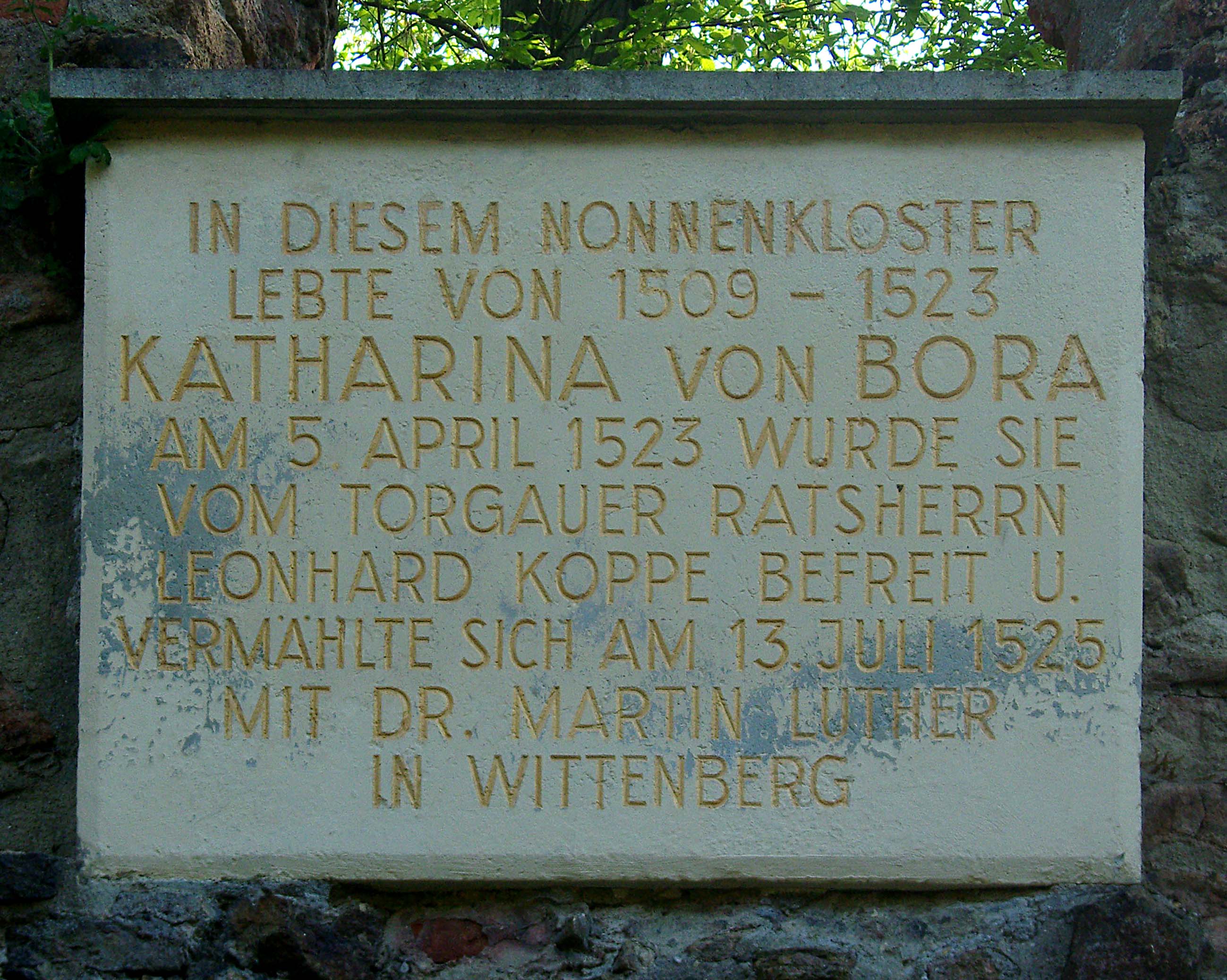 폰 보라가 수도원에서 지낸 것과 그곳에서 탈출한 것을 기념하는 님브센 수도원 유적지에 있는 명패