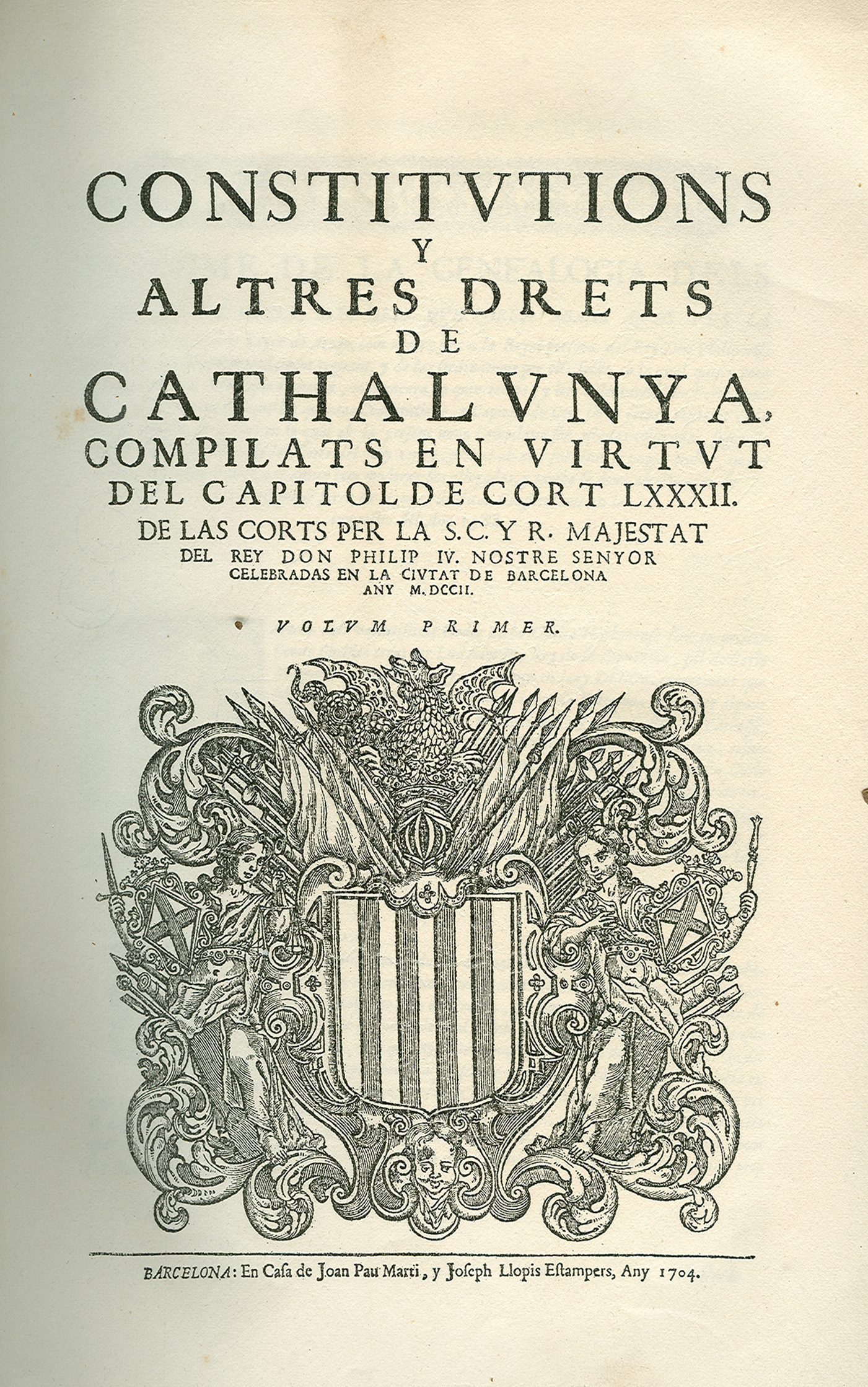 카탈루냐 헌법(''Constitucions catalanes'')은 바르셀로나 백작으로서 군주가 반포하고 카탈루냐 코르테스에서 승인한 카탈루냐 공국의 법률이었다. 최초의 헌법은 1283년에 반포되었고, 마지막 헌법은 1706년에 반포되었다. 이 헌법들은 다른 법률보다 우선하며 코르테스 자체에서만 폐지할 수 있었다.[7]