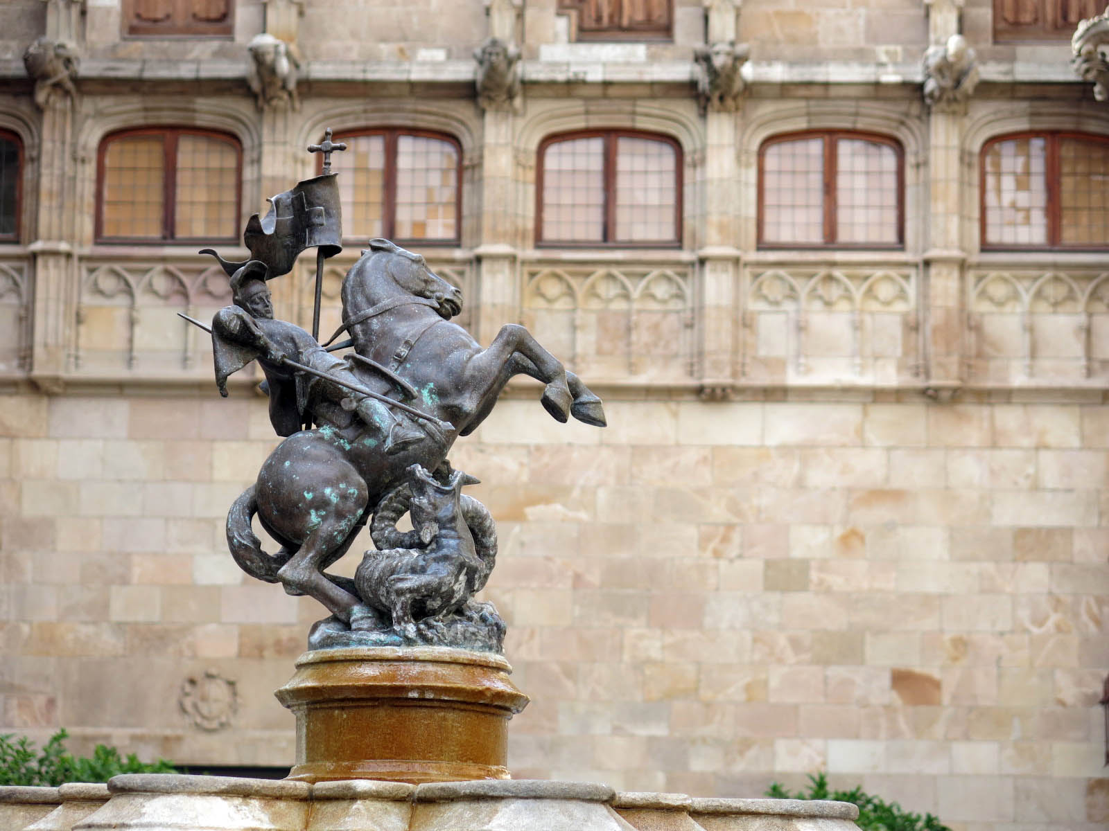 공통의 역사와 공유된 경험, 그리고 수 세기 동안 다양한 수준에서의 상호 작용으로 인해, 많은 전통적인 카탈루냐 상징은 아라곤, 발렌시아 공동체, 발레아레스 제도의 상징과 중첩된다. 이는 종종 아라곤 왕관과 문화적으로 카탈루냐 지역이었던 지역을 둘러싼 문화, 역사 및 언어 문제에 대한 상이한 인식에 관한 갈등을 해결하기 어렵기 때문에 논란의 원인이 된다. 고대 왕들이 묻힌 포블레 수도원과 같은 장소는 특히 12세기에 카탈루냐를 통합하는 데 도움이 된 공통 상징으로 존경받고 있다.[7]이미지 설명 카탈루냐 헌법 성 조지의 십자가 팔라우 데 라 제네랄리타트 포블레 수도원