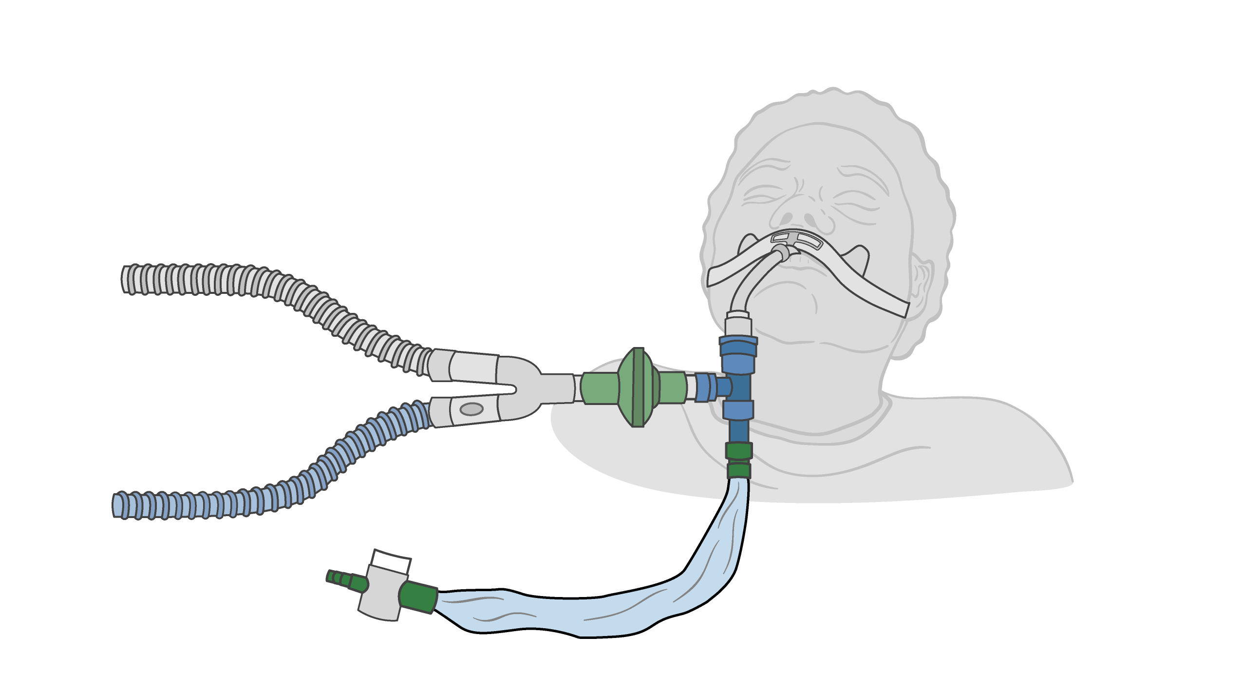 - 산소, 휘발성 마취제를 투여하거나, 기관절개용 튜브를 사용하여 인공 호흡을 한다.