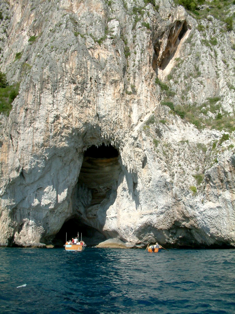카프리섬 해안 근처는 상당 부분 절벽으로 둘러싸여 있으며, 파도가 치는 곳에는 반쯤 수중에 잠긴 해식 동굴인 푸른 동굴(Grotta Azzurra)이 있다. 이 동굴은 섬 내 주요 관광지 중 하나이다.