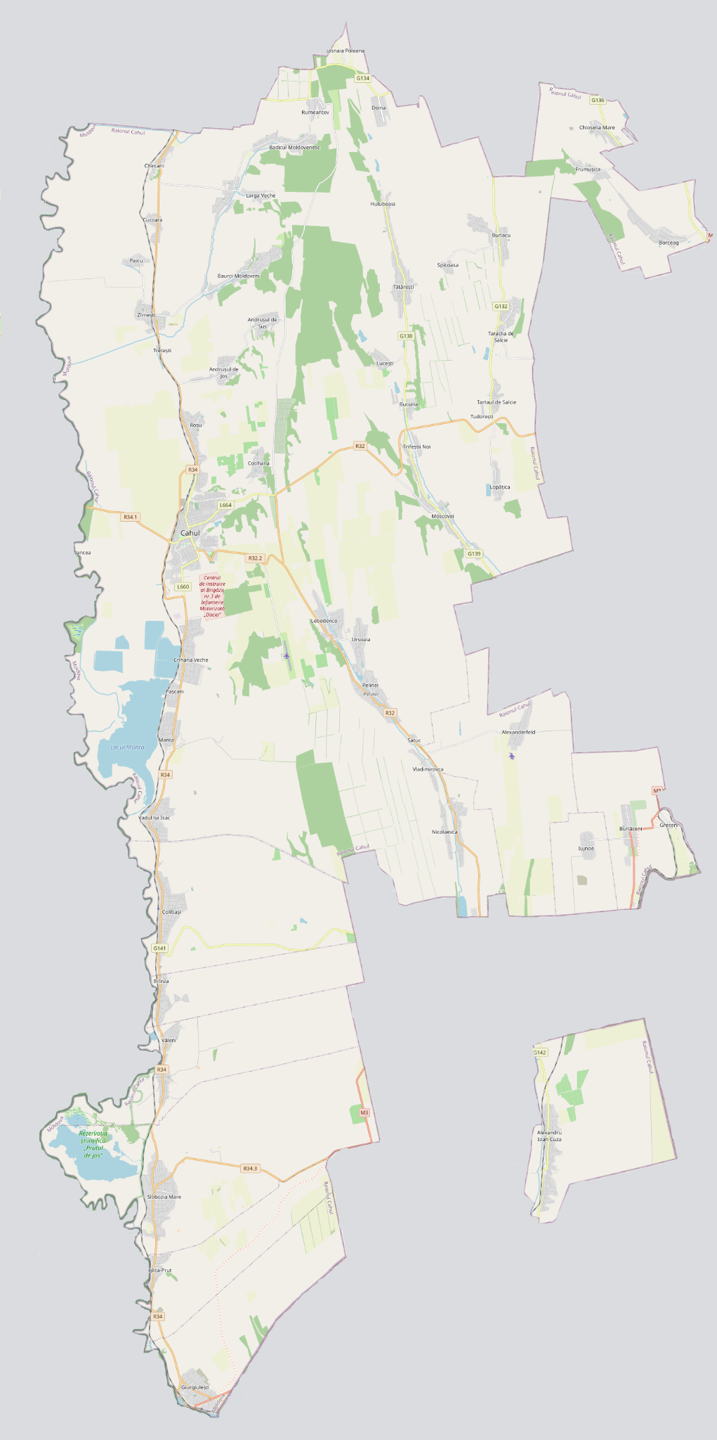 수문 네트워크는 프루트강과 다뉴브강을 기반으로 하며, 이곳은 초원, 연못, 자연호를 형성한다. 몰도바에서 가장 큰 두 개의 자연호는 이 지역에 위치해 있으며, 만타호(21km2)와 벨레우호(11km2)이다. 다뉴브강에서 흑해까지 1,200 미터의 지역이 접근 가능하며, 중앙 유럽과 동유럽의 유역을 형성한다.4. 행정 구역