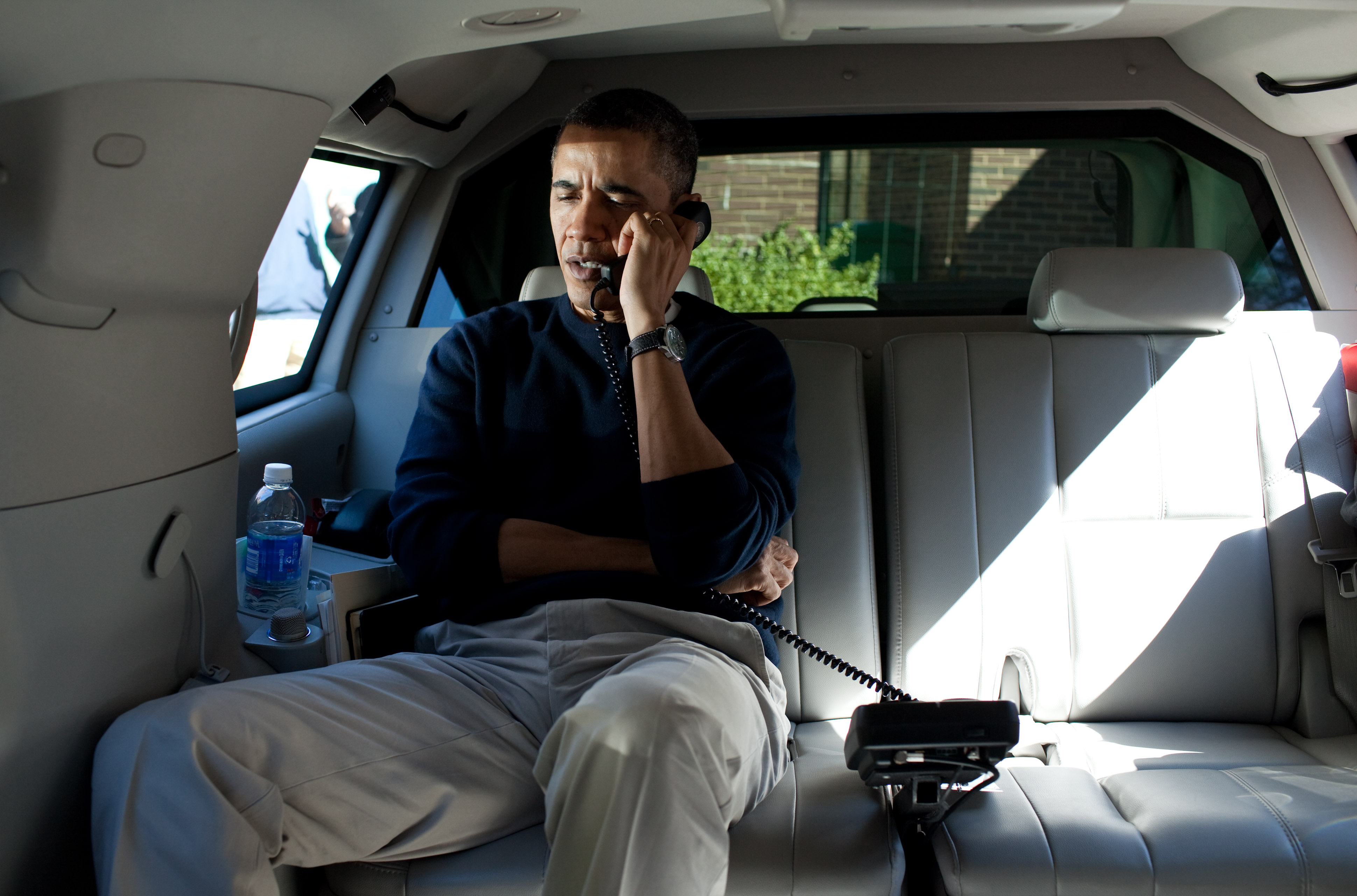 바락 오바마 미국 대통령이 칸다하르 학살 사건 이후 하미드 카르자이 아프가니스탄 대통령과 전화 통화를 하고 있다.