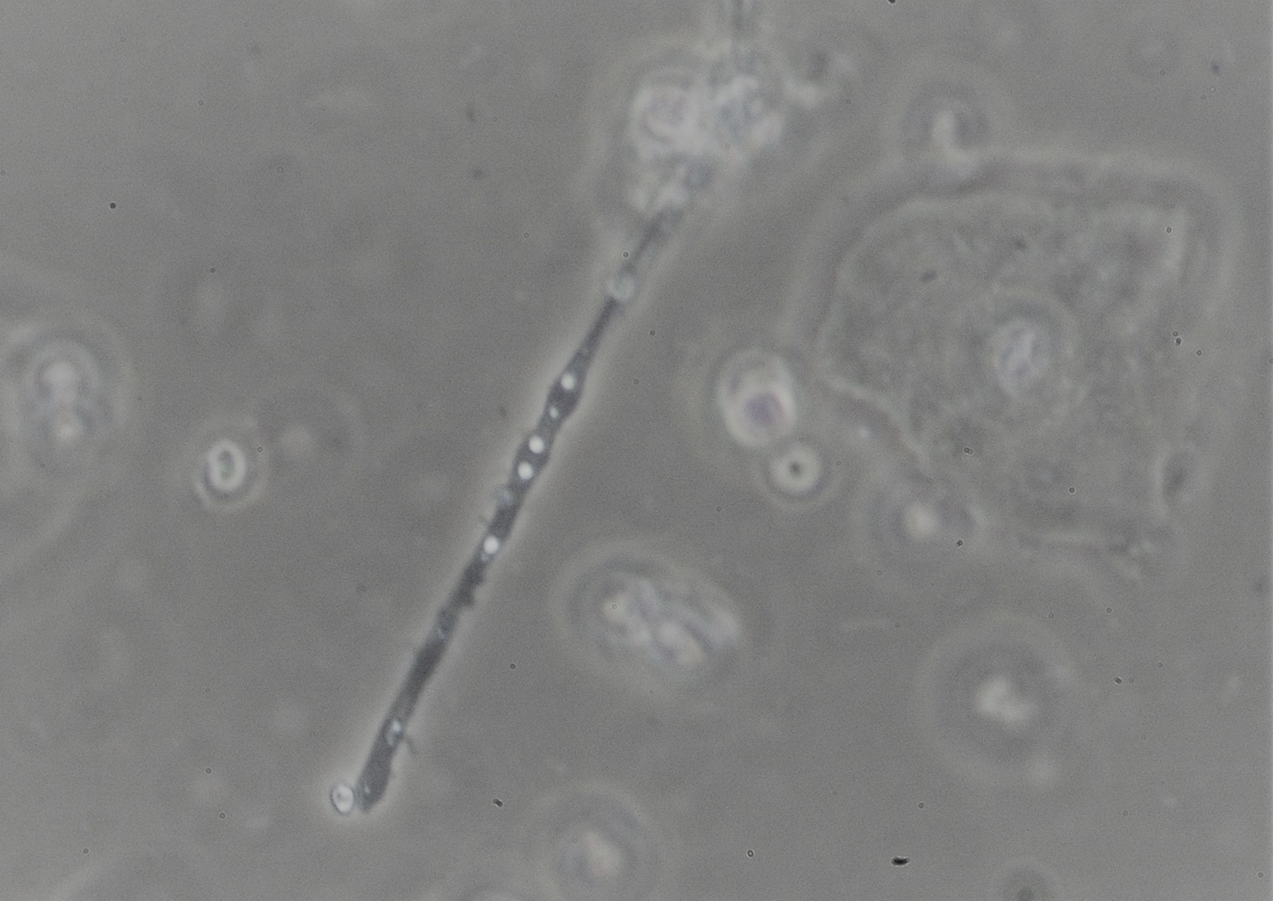 광학 현미경 검사의 경우, 감염 부위에서 긁어낸 시료나 스왑을 현미경 슬라이드에 놓고, 10% 수산화칼륨(KOH) 용액 한 방울을 첨가한다.[55] KOH는 피부 세포를 용해하지만 ''칸디다'' 세포는 그대로 두어 가짜균사와 발아 효모 세포를 확인할 수 있게 한다.[55]