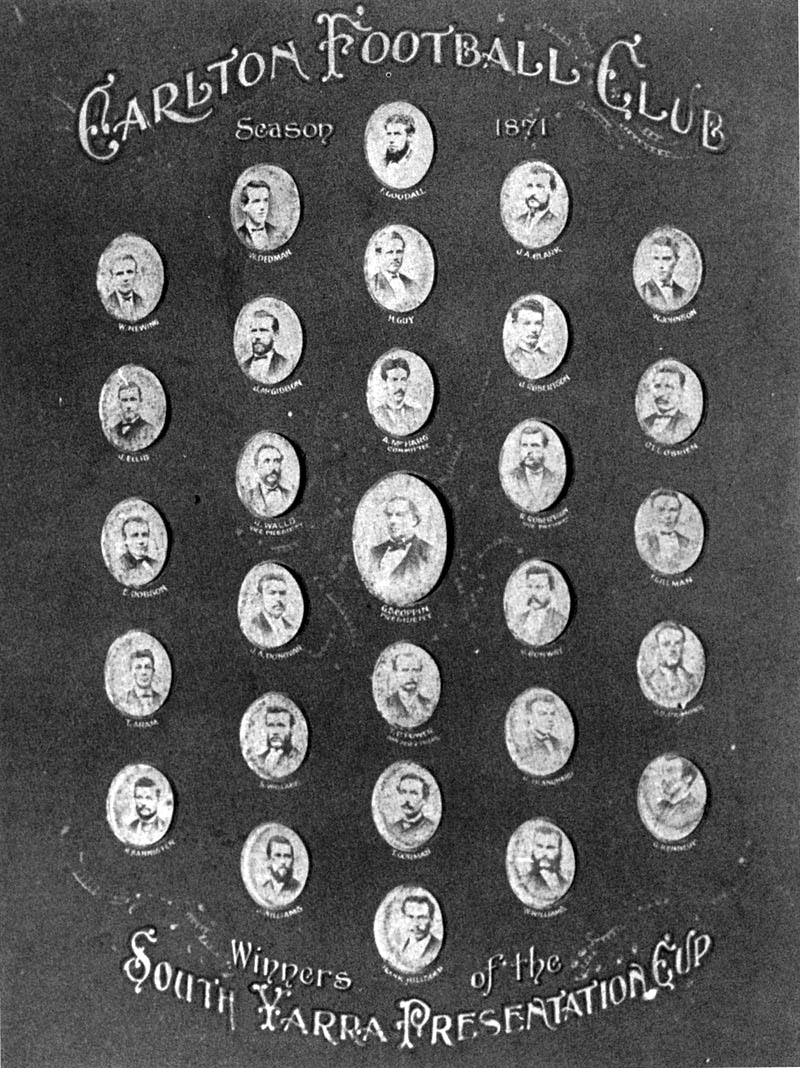 1877년에 칼턴은 빅토리안 풋볼 협회의 창립 클럽 중 하나였으며, 대회 첫 시즌에 우승을 차지했다.[13]