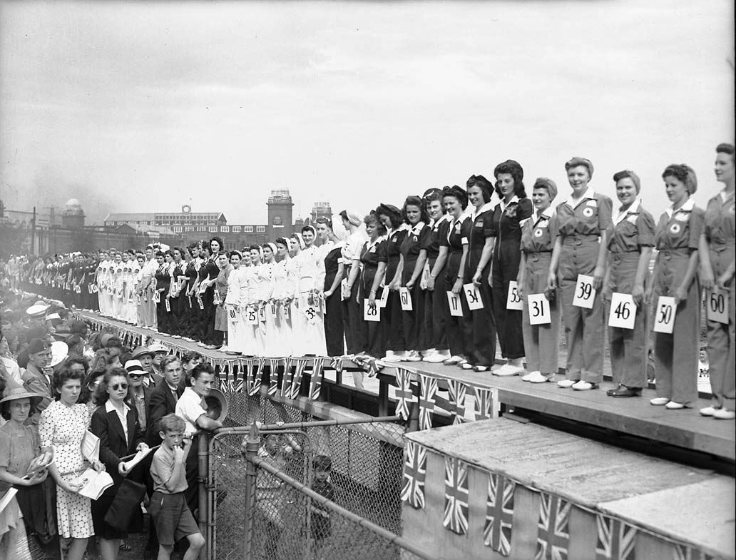 제2차 세계 대전 중 CNE에서 열린 미스 전쟁 근로자 미인 대회.