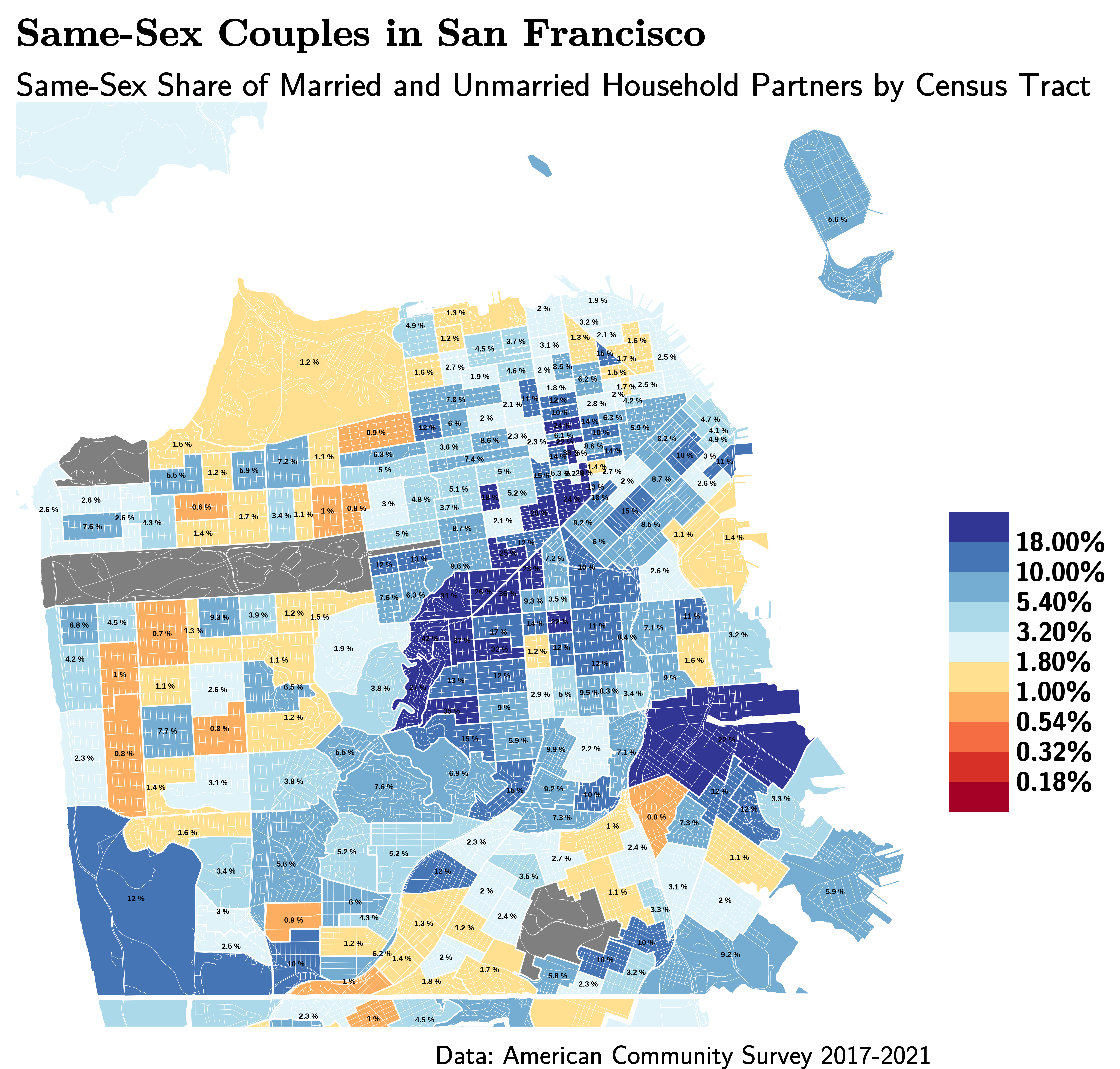 코로나 하이츠, 미션 지구, 노에 밸리, 트윈 픽스, 헤이트-애쉬버리와 같은 주변 주거 지역에도 많은 게이들이 거주하고 있다.[5] 일부에서는 듀보스 트라이앵글과 돌로레스 하이츠를 포함하는 것으로 간주하기도 한다.[5]