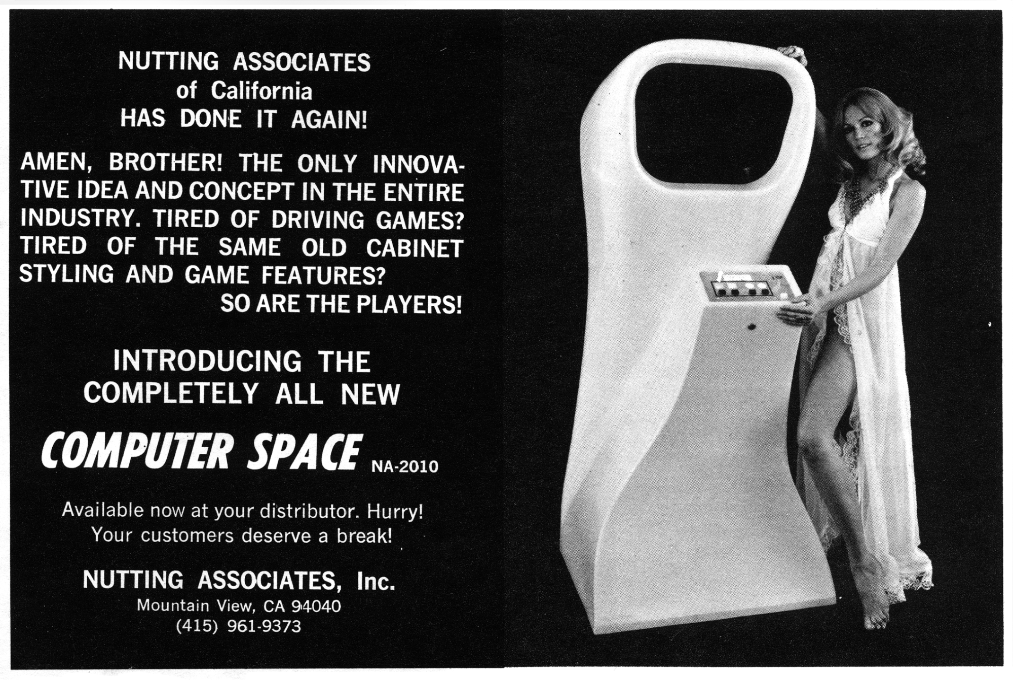 '컴퓨터 스페이스'는 최초의 상업용 아케이드 비디오 게임으로, 비디오 게임 산업의 시작을 알렸다.[1] 놀런 부시넬은 유타 대학교 재학 시절 PDP 시리즈의 PDP-1용 컴퓨터 게임 프로그램 스페이스워!의 매력을 알고 아케이드 시설에서 가동하는 컴퓨터 게임 개발을 시작했다. 그러나 당시 컴퓨터는 매우 고가여서 채산성이 맞지 않는다고 판단하여 시판은 보류했었다.
