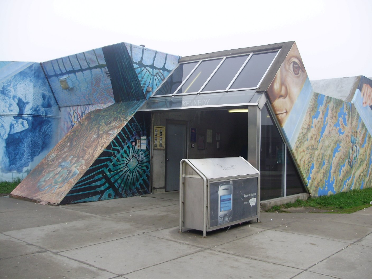 케네디역에는 예술가 프랭크 페르나의 벽화 ''A Sense of Place''가 있었다. 이 벽화는 1997년에 완성되었으며[10] 역의 주 출입구를 감싸고 있었지만, 2018년에 출입구가 철거되면서[11] 벽화의 절반이 파괴되었다.