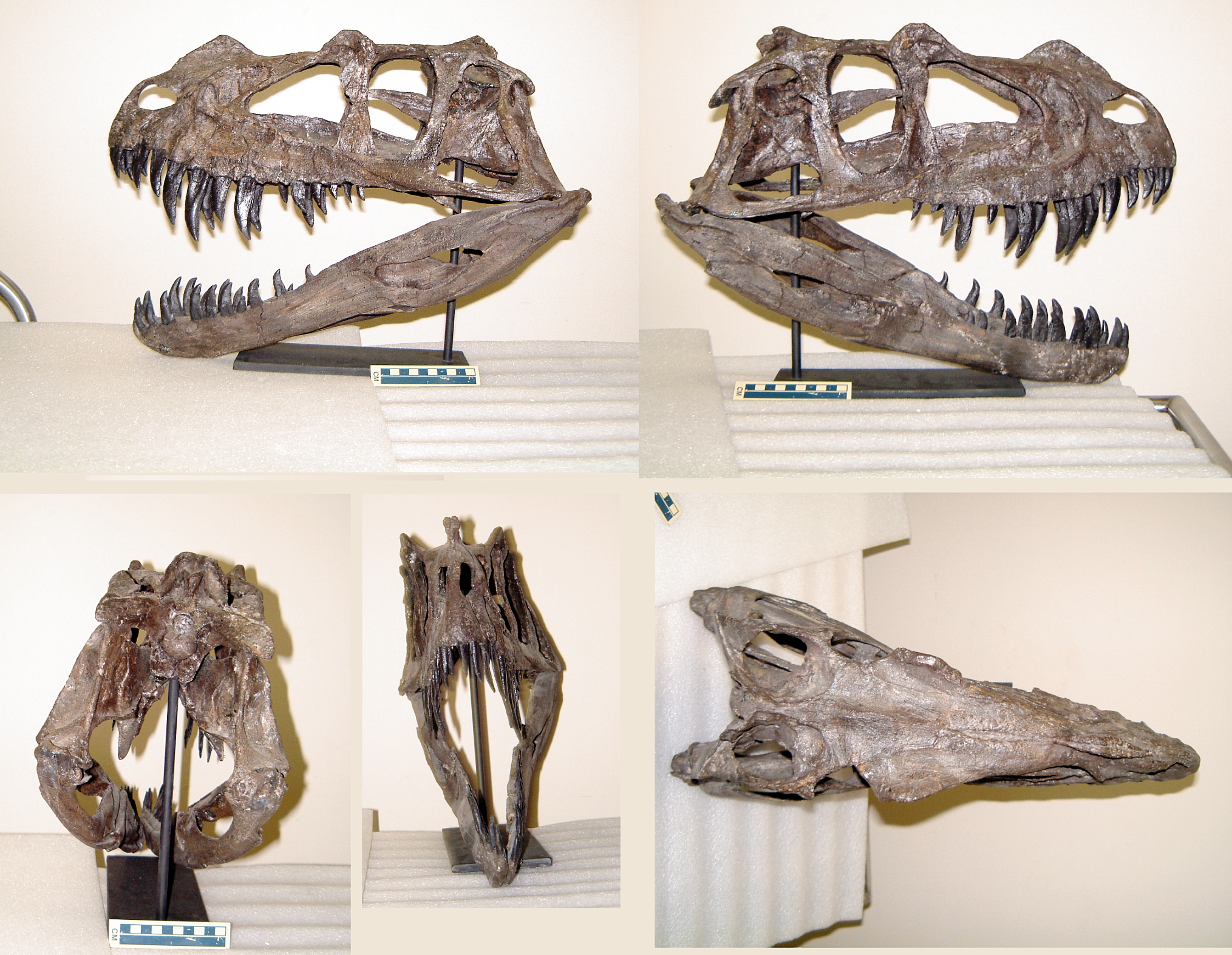 1960년대 초, 제임스 매드슨 팀이 유타 주 클리블랜드-로이드 공룡 채석장에서 두개골(UMNH VP 5278)을 포함한 단편적인 골격을 발굴하면서 ''C. nasicornis'' 홀로타입 발견 이후 상당한 규모의 ''케라토사우루스'' 화석이 발견되었다. 이는 알려진 가장 큰 ''케라토사우루스'' 표본 중 하나이다. 1976년에는 고생물학자 랜스 에릭슨의 아들 토르 에릭슨이 콜로라도주 푸루이타 근처에서 두개골을 포함한 두 번째 연결된 표본(MWC 1)을 발견했다. 비교적 완전하지만 아래턱, 앞다리, 위장늑골이 없다. 두개골은 비교적 완전하지만 분리된 상태로 발견되었고 옆으로 심하게 납작해졌다. 큰 개체였지만 두개골 뼈 사이 봉합선이 융합되지 않아 아직 성체가 아니었다. 박물관 전시용으로 과학적이고 정확한 두개골 3차원 재구성은 개별 원본 뼈의 성형 및 주조, 변형 수정, 누락 부분 재구성, 뼈 주조물 조립, 원래 색상과 일치하도록 페인팅하는 복잡한 과정을 거쳤다.