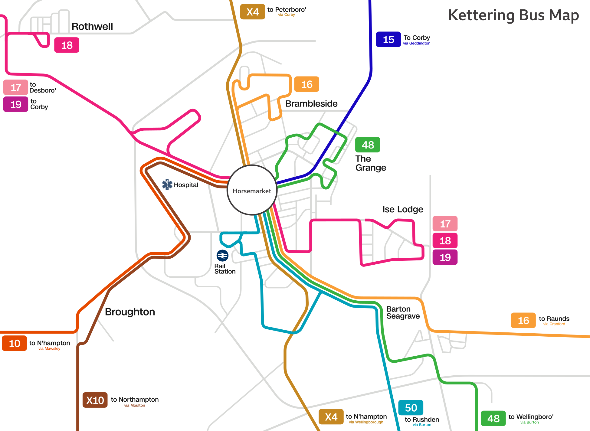 몇 번의 실패 후 미들랜드 철도는 1857년 케터링 기차역을 개통하여, 전국 철도 도입 이후 여행 사업의 손실로 인해 어려움을 겪고 있던 지역 경제에 반가운 경제적 자극을 제공했다. 1857년 철도는 레스터에서 히친까지 케터링을 지나갔으며, 거기에서 그레이트 노던 철도와 연결되었다. 기차는 거기에서 런던 킹스 크로스로 운행되었다. 이 노선은 1868년 미들랜드가 베드퍼드에서 런던 세인트 판크라스까지 자체 노선을 개통하면서 마침내 런던과 직접 연결되었다.[25][26]