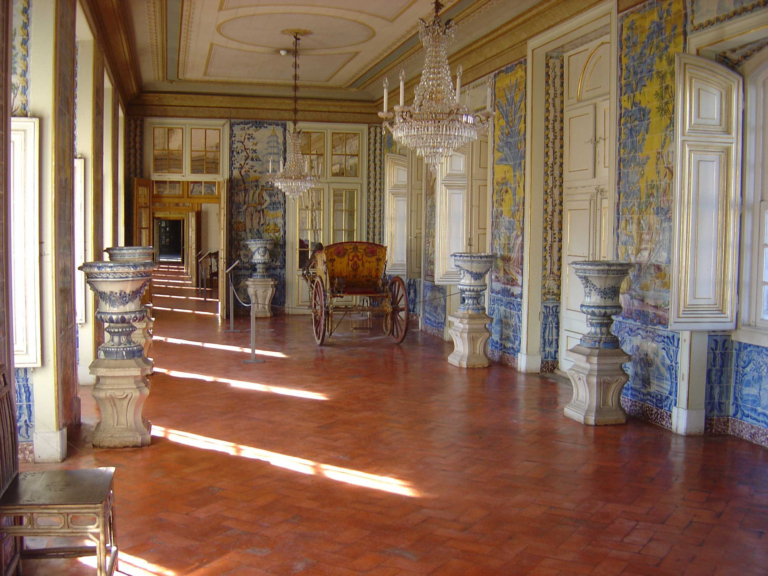 - 응접실 (살라 도스 엠바샤도르스): '대사들의 방'이라고도 불리며, 1757년 로빌론이 설계하였다. 천장에는 프란시스쿠 드 멜루가 마리아 1세 통치 기간 동안 포르투갈 왕족이 콘서트에 참석하는 모습을 묘사한 그림이 있다. 바닥은 흑백 대리석 타일의 체커보드 패턴이다.[23]