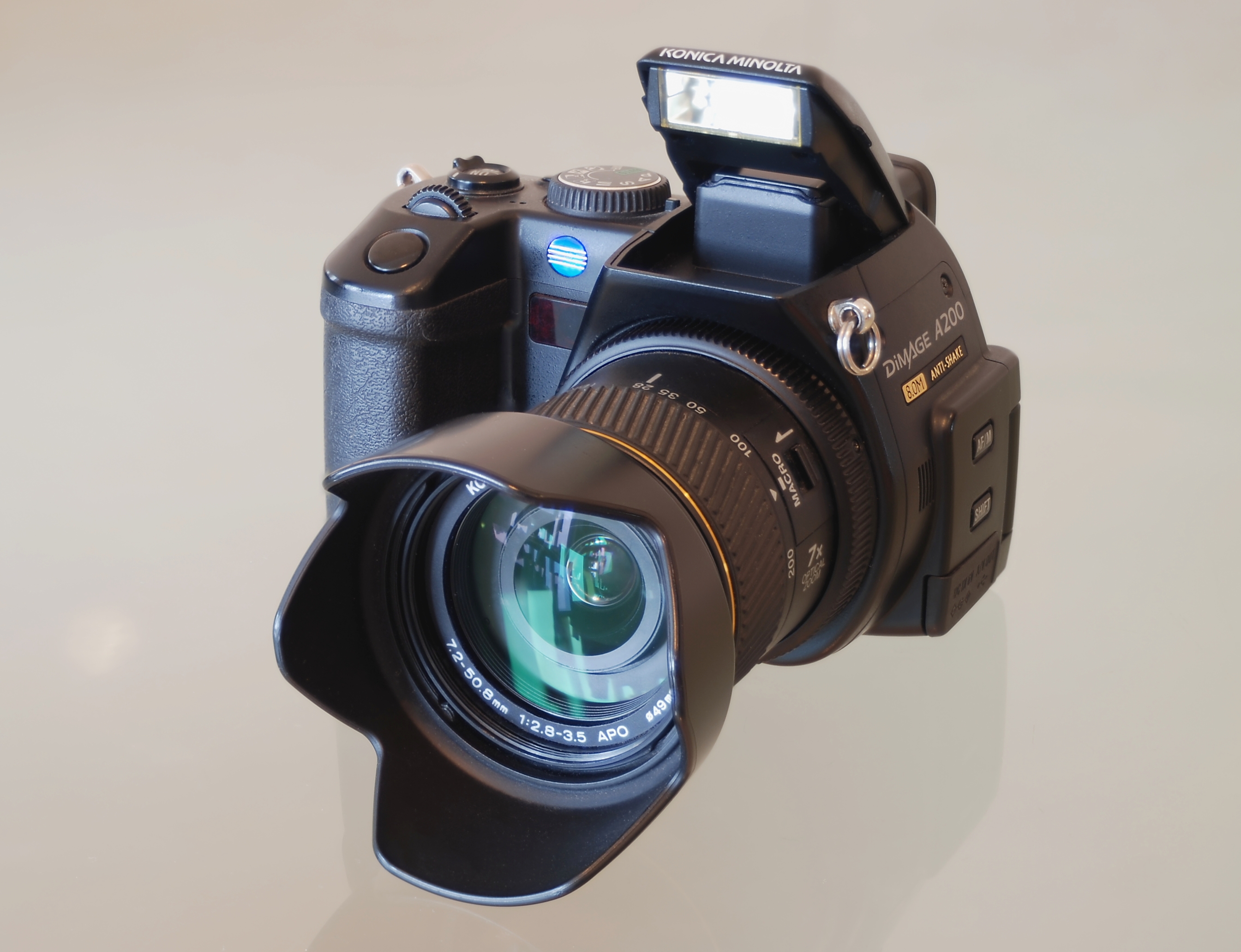 합병 이후, 코니카 미놀타는 디지털 사진 시장에서 경쟁하기 위해 DiMAGE 라인의 디지털 콤팩트 카메라를 출시했다. DiMAGE 7과 DiMAGE 5를 출시하면서 "SLR과 유사한" 카메라라는 새로운 카테고리를 만들었다. 이 카메라들은 전통적인 SLR 카메라의 기능과 디지털 카메라의 특수 기능을 혼합했다. DiMAGE A1/A2/A200은 센서 기반, 압전식 작동식 흔들림 방지 시스템을 통합했다.