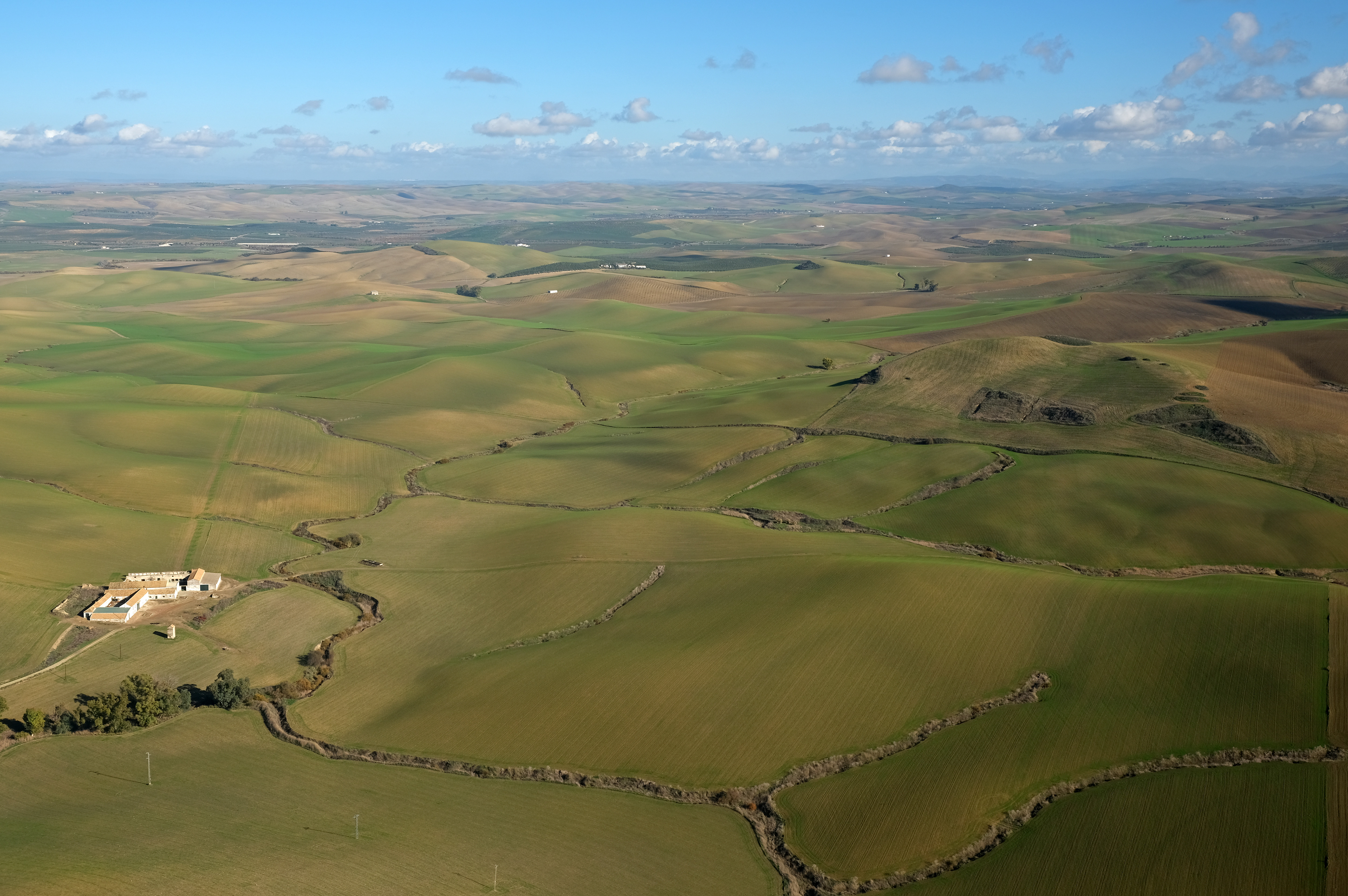 과달키비르 강 남쪽에 위치한 마이오세 "캄피냐"는 언덕이 많은 지형을 특징으로 하며, 높이가 약 200m까지 완만하게 증가한다. 도시 북쪽에 있는 "시에라"에서는 고도가 약 500m까지 비교적 급격하게 증가한다. "시에라"와 "캄피냐" 모두 계곡을 조망할 수 있는 전망대를 갖추고 있다.
