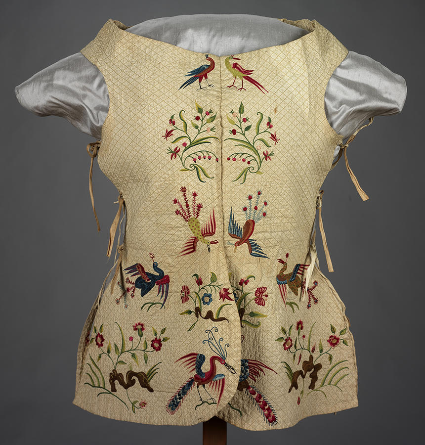 18세기 스테이즈의 목적은 가슴을 지지하고 유행하는 원뿔형 몸통 모양을 만들면서 어깨를 뒤로 당기는 것이었다. 스테이즈는 나선형으로 묶을 수 있도록 구멍(eyelets)이 어긋나게 배치되었다. "점프(jumps)"는 스테이즈의 변형으로, 더 느슨하고 보강재가 없었으며, 때로는 재킷처럼 소매가 달려 있었다.[24] 궁정 귀부인부터 길거리 상인에 이르기까지 모든 계층의 여성들이 스테이즈나 점프를 착용했다.