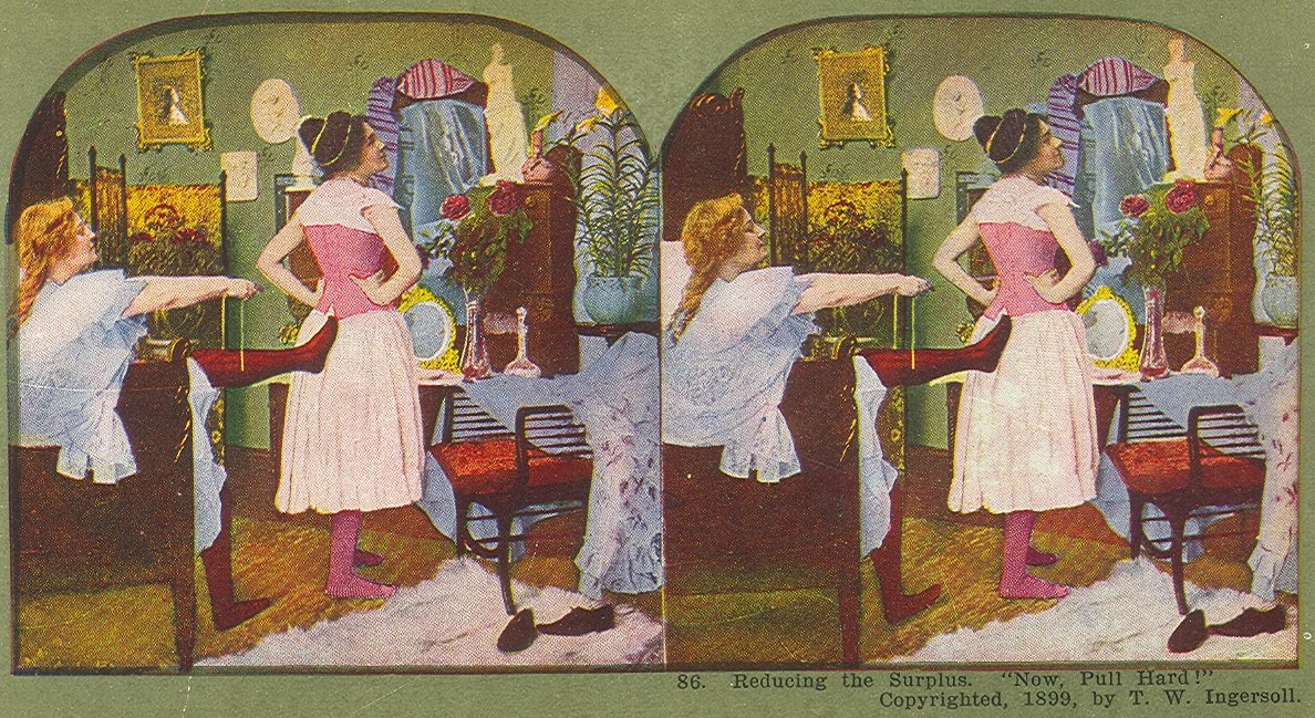 1910년, 의사 로버트 라투 디킨슨(Robert Latou Dickinson)은 코르셋이 내장 기관의 변위와 변형을 일으킨다는 연구 결과를 발표했다.[37]