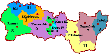 구 이름 주요 도시 젤니차 구 코시체오콜리에 구 미할로우체 구 미할로우체, 스트라스케, 벨케카푸샤니 로주냐바 구 돕시나, 로주냐바 소브란체 구 소브란체 스피슈스카노바베스 구 크롬파히, 스피슈스카노바베스, 스피슈스케블라히 트르제비쇼프 구 치에르나나트티소우, 크랄로우스키흘메츠, 세초우체, 트레비쇼프