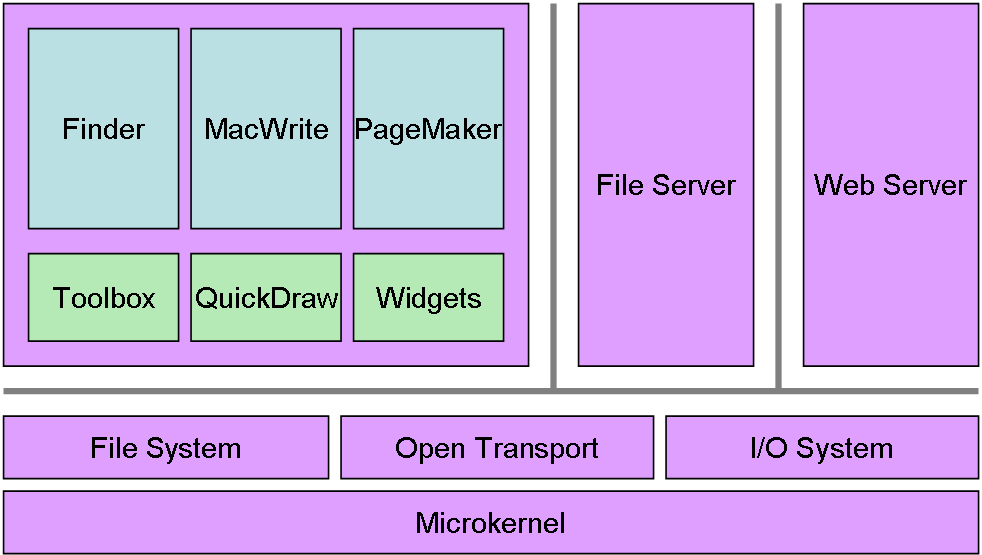 - *예를 들어, QuickDraw GX와 PostScript가 양립하지 않고, 나중에 만들어진 QuickDraw 3D를 넣으면 불안정해지는 등