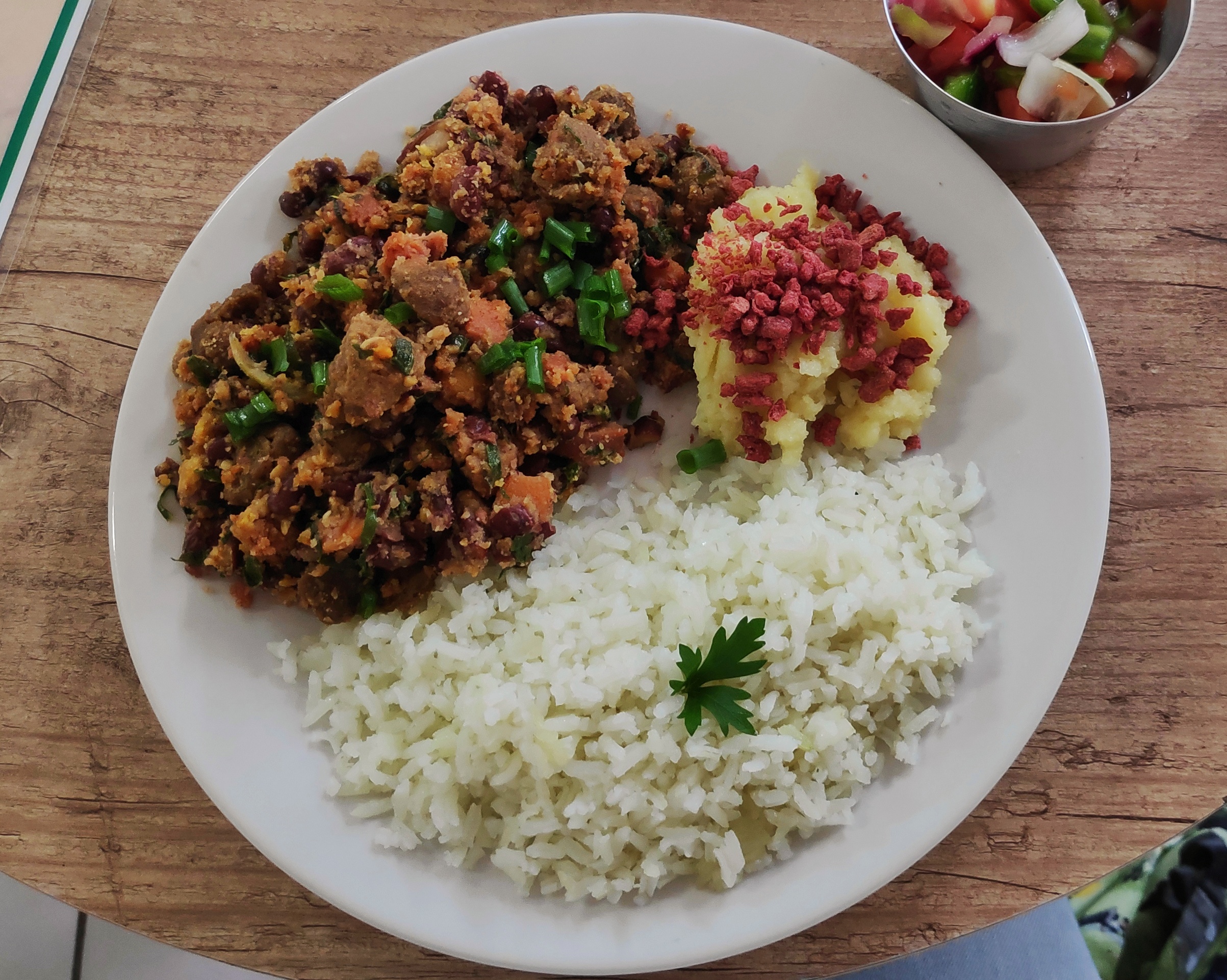 텍스처드 식물성 단백질(TVP)은 다진 고기의 질감을 낼 수 있어 다양한 형태로 사용된다.[11] 칠리 콘 카르네, 스파게티 볼로네제, 슬로피 조, 타코, 햄버거, 부리토 등 전통적인 육류 기반 요리의 채식 또는 비건 버전을 만들 때 TVP를 사용할 수 있다.